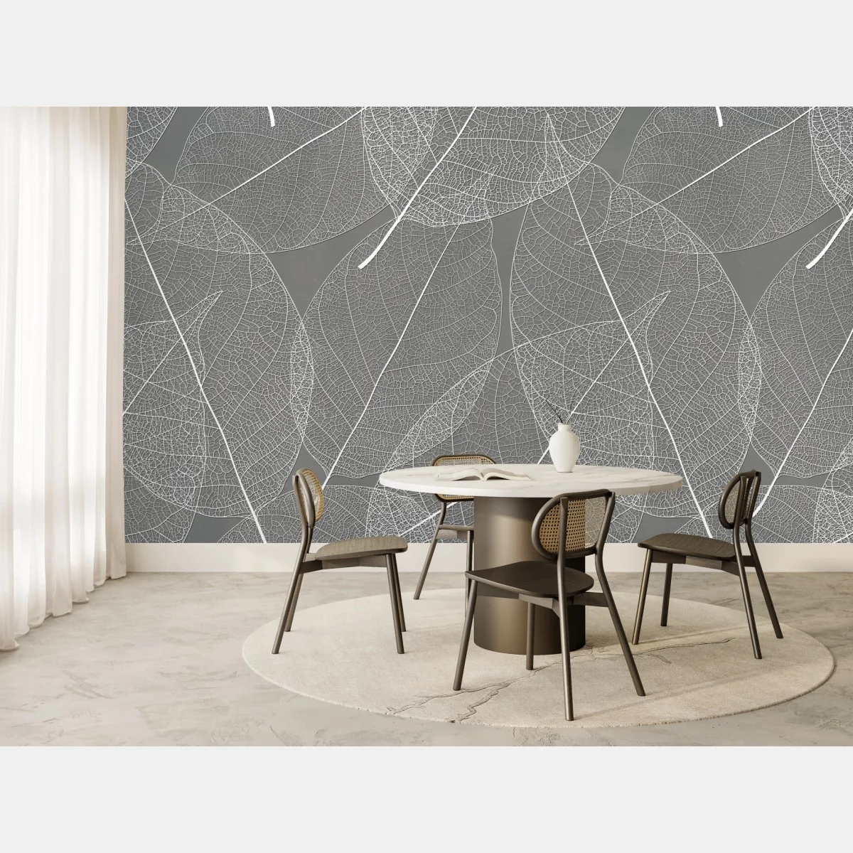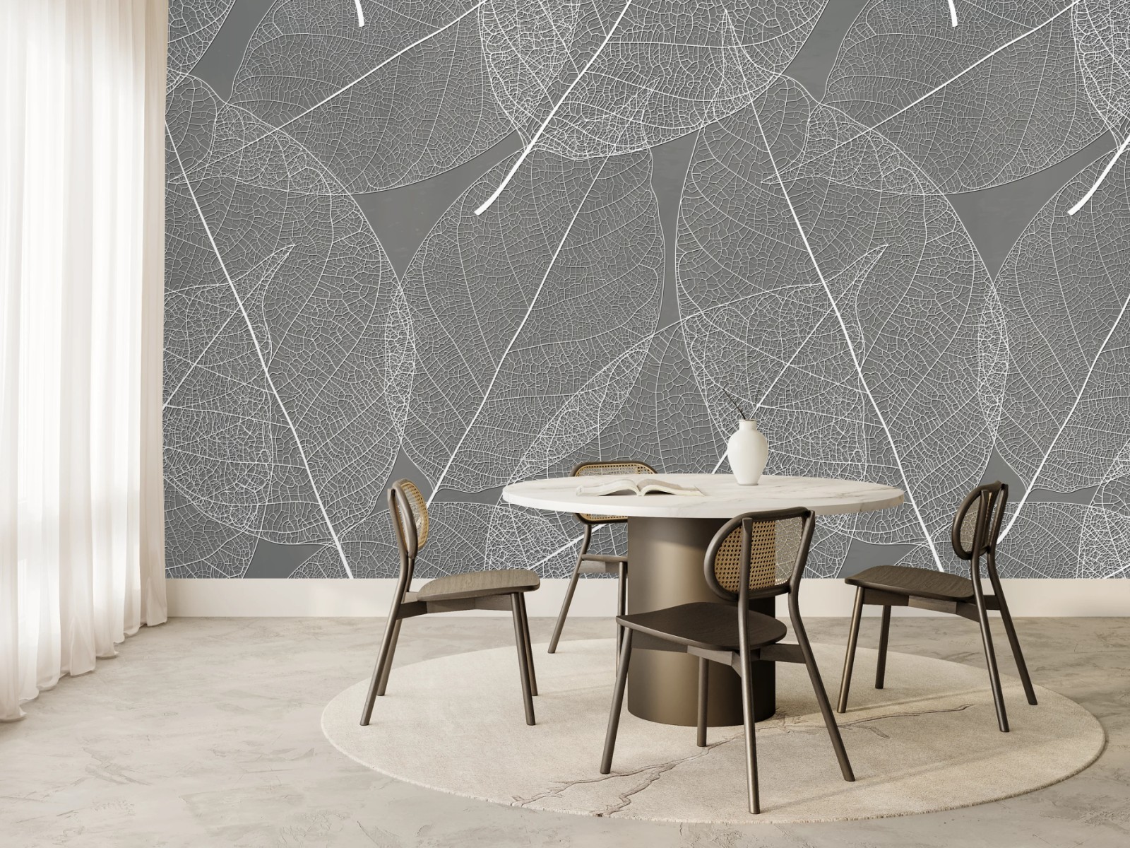 - dekoracja ścienna, botaniczny, wzór, minimalistyczny, tekstura, liście, monochromatyczny, szary, szkielety liści, żyłki liści