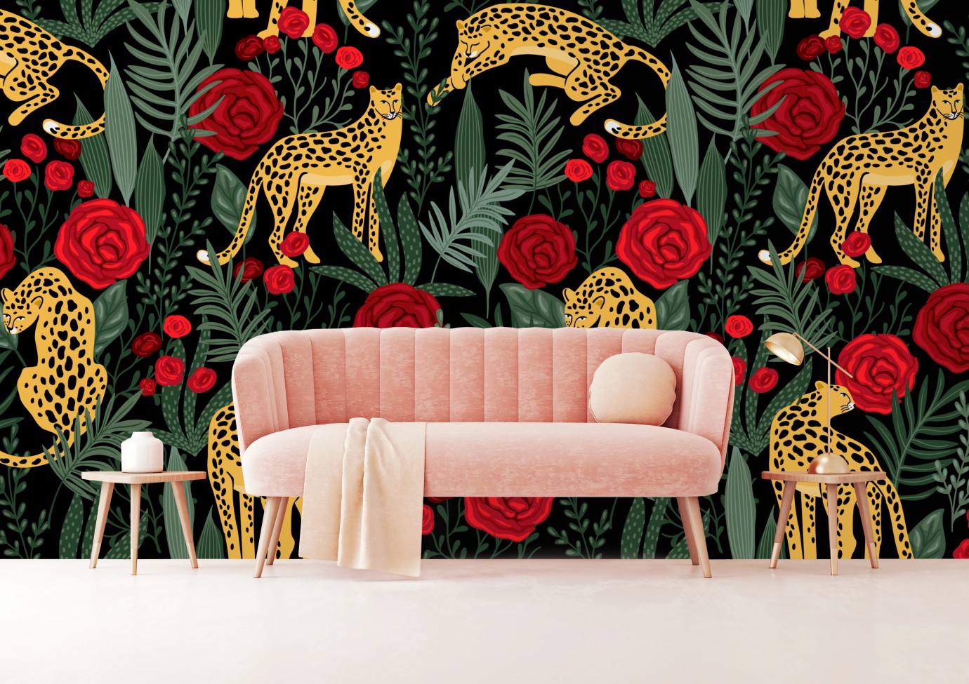Fototapeta Złote gepardy i czerwone róże