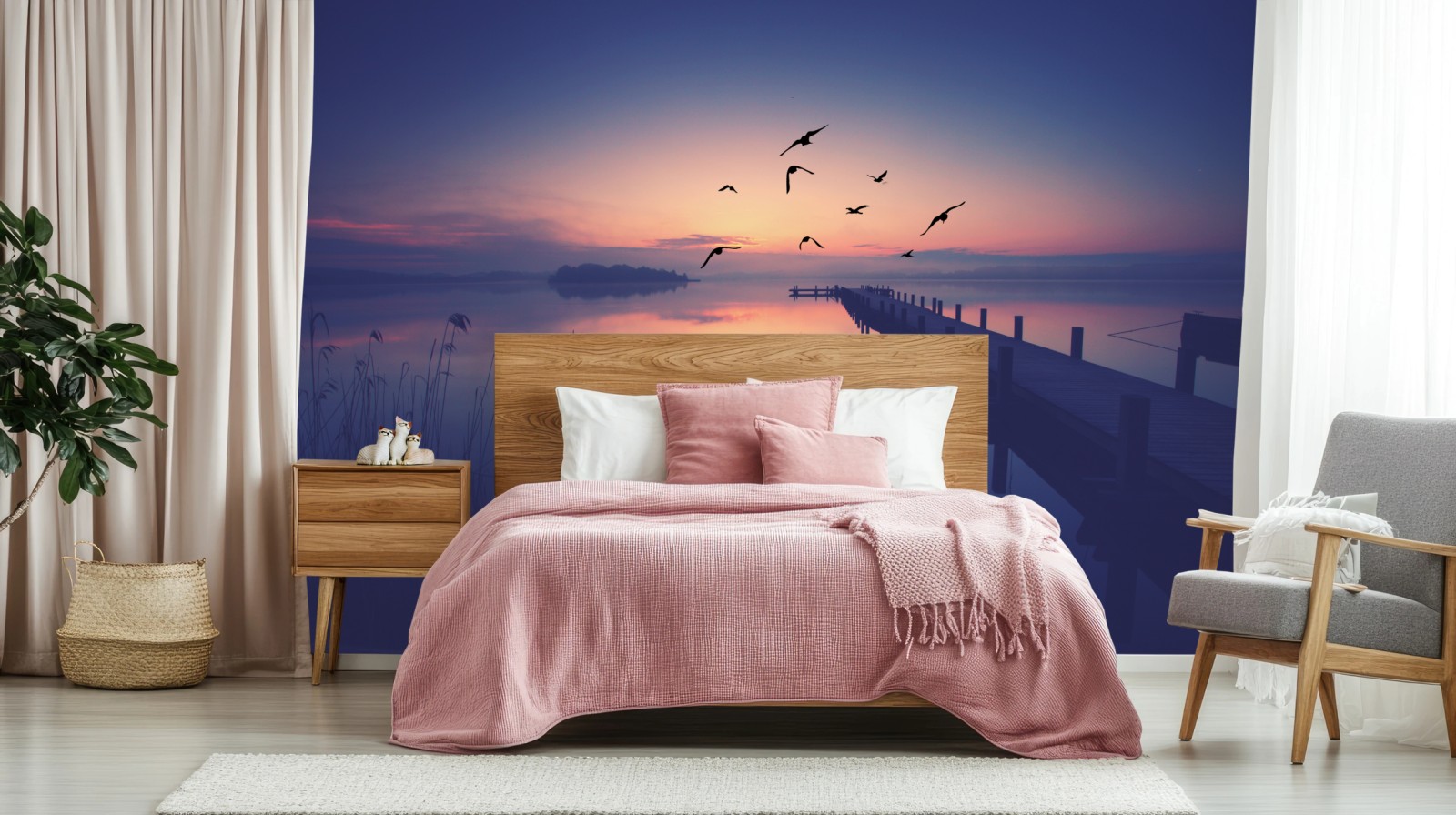 Fototapeta Spokojny wschód nad jeziorem z ptakami