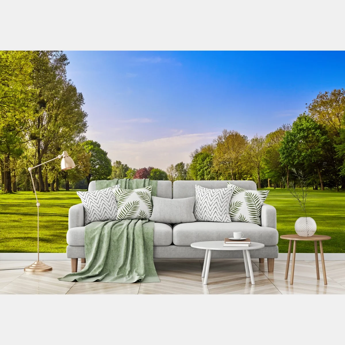 - panorama, krajobraz, drzewa, spokój, przyroda, na zewnątrz, niebieskie niebo, zielona trawa, światło słoneczne, park
