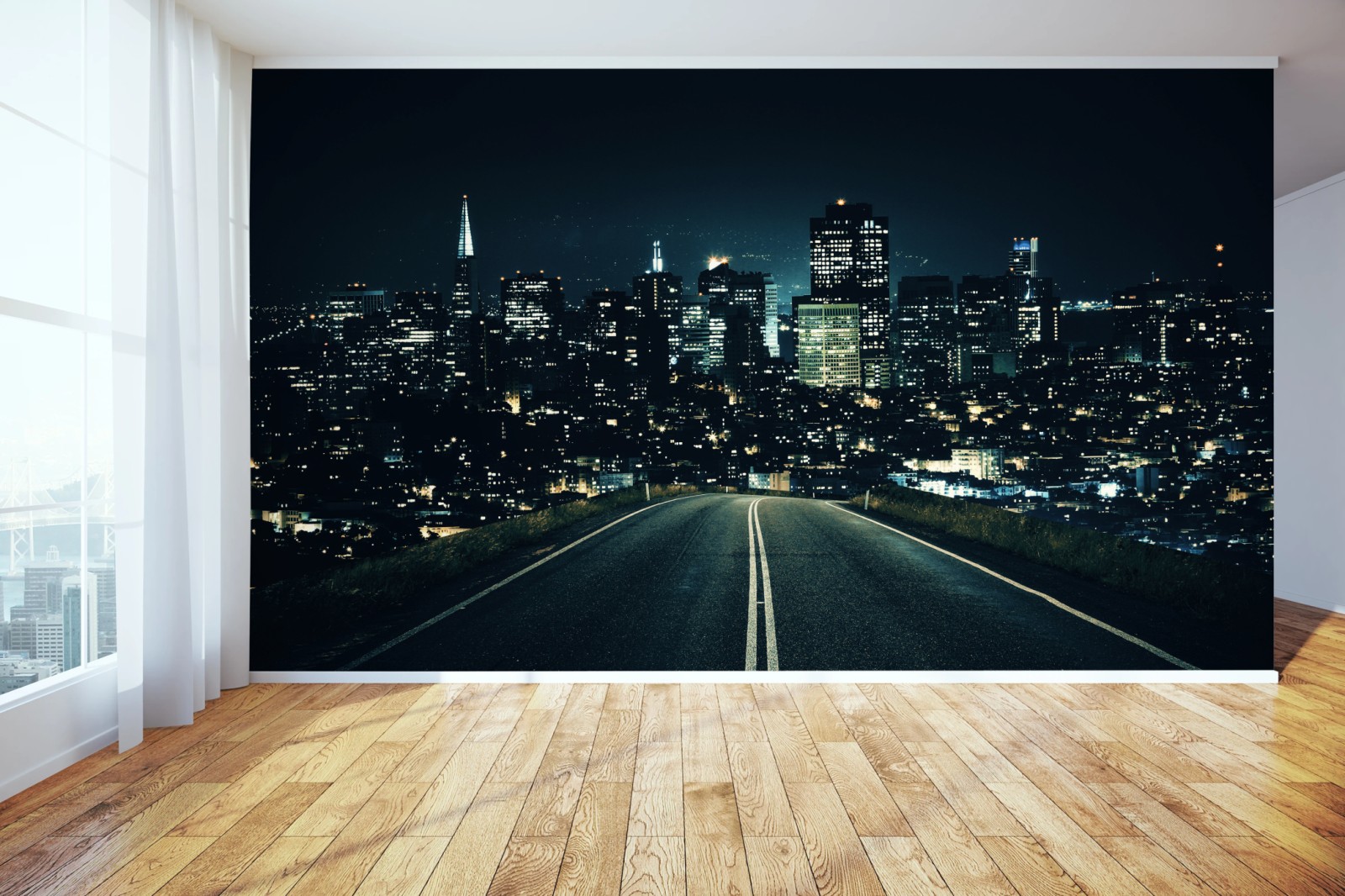 Fototapeta Droga prowadząca do oświetlonej panoramy miasta nocą