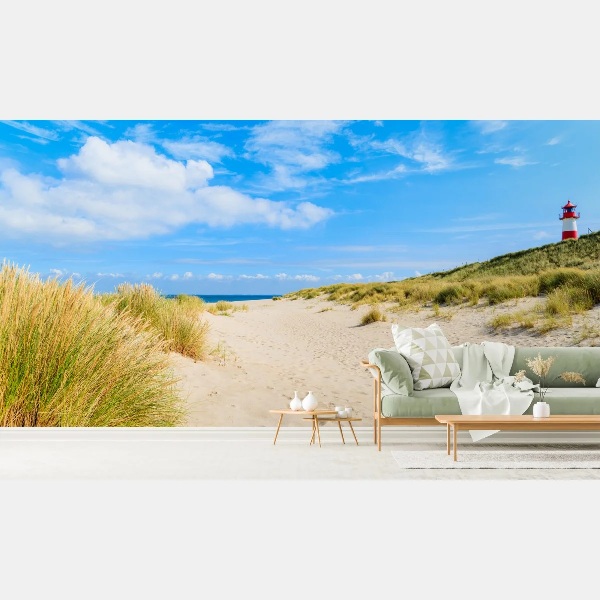 Fototapeta Spokojne wydmy Sylt z latarnią morską