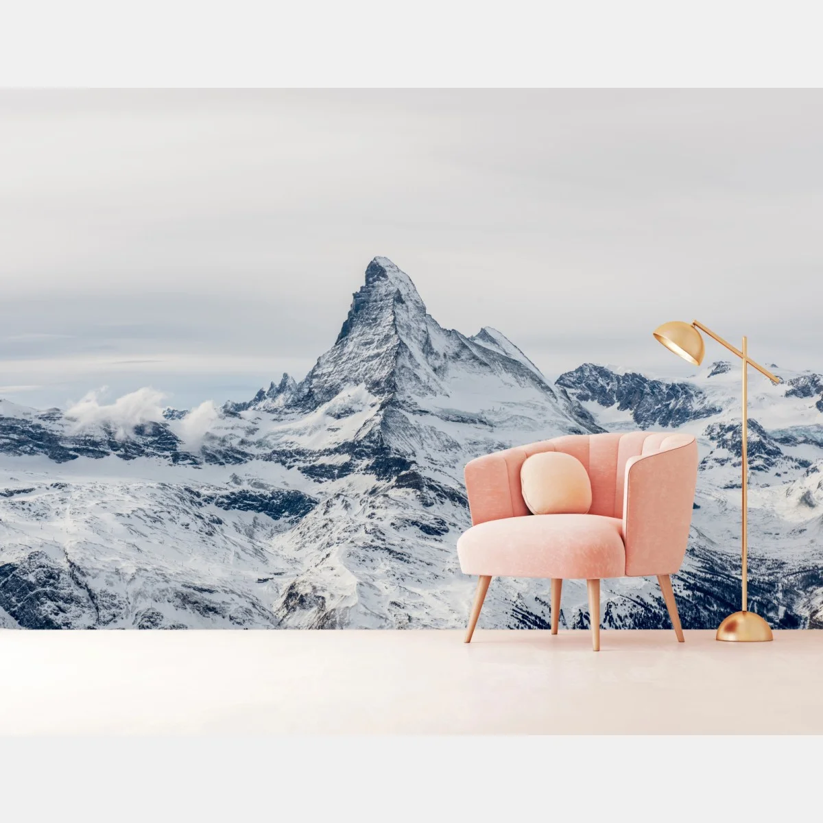 Spokojny panoramiczny widok na ośnieżony szczyt, który wnosi naturalne piękno i atmosferę do każdego wnętrza.WięcejMniej