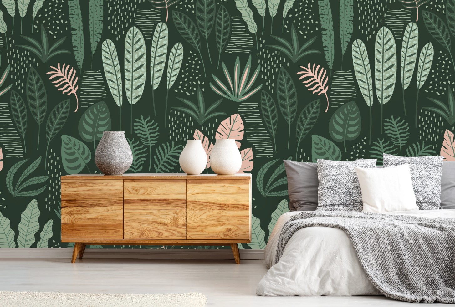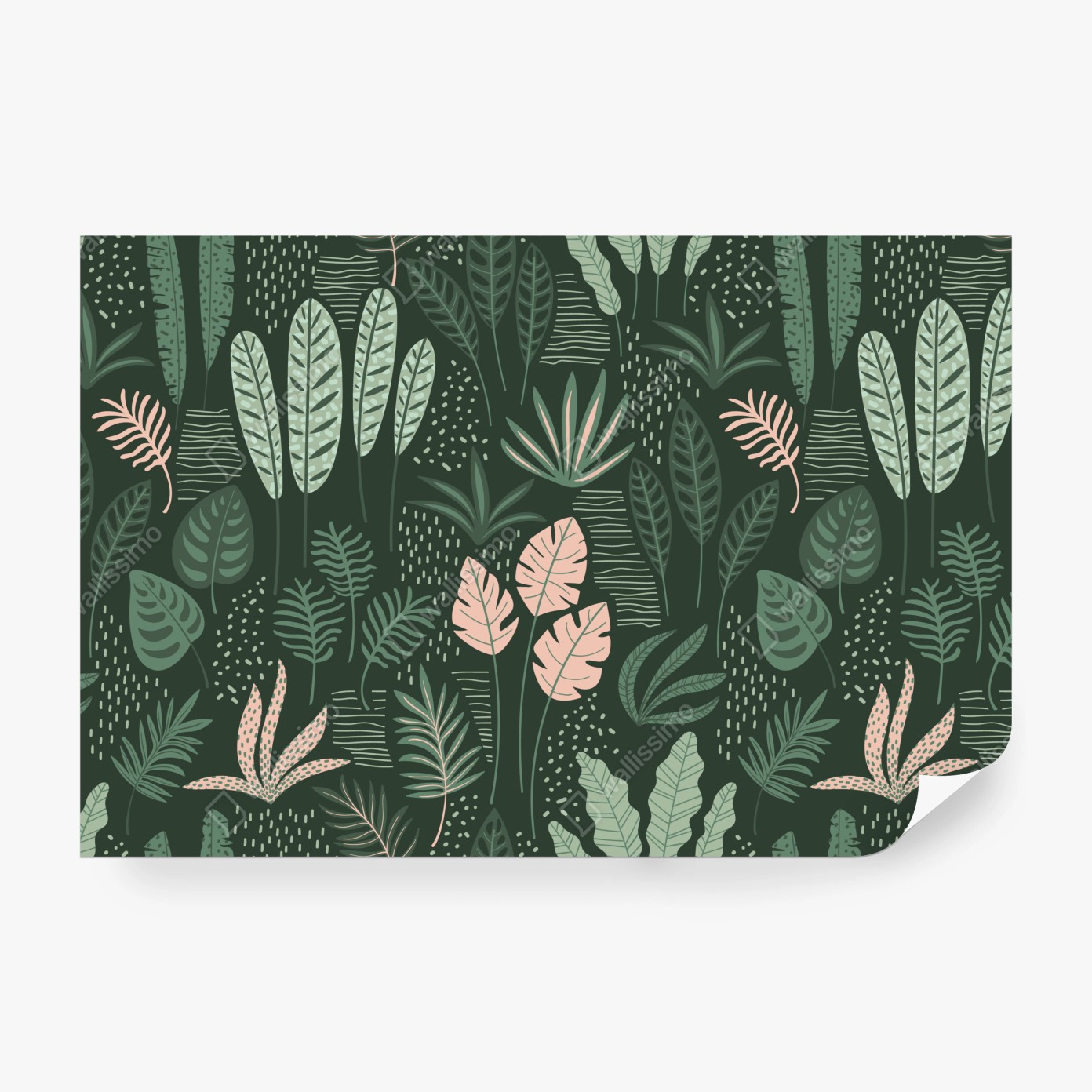 Fototapeta Tropikalny wzór liści w stonowanej zieleni i różu