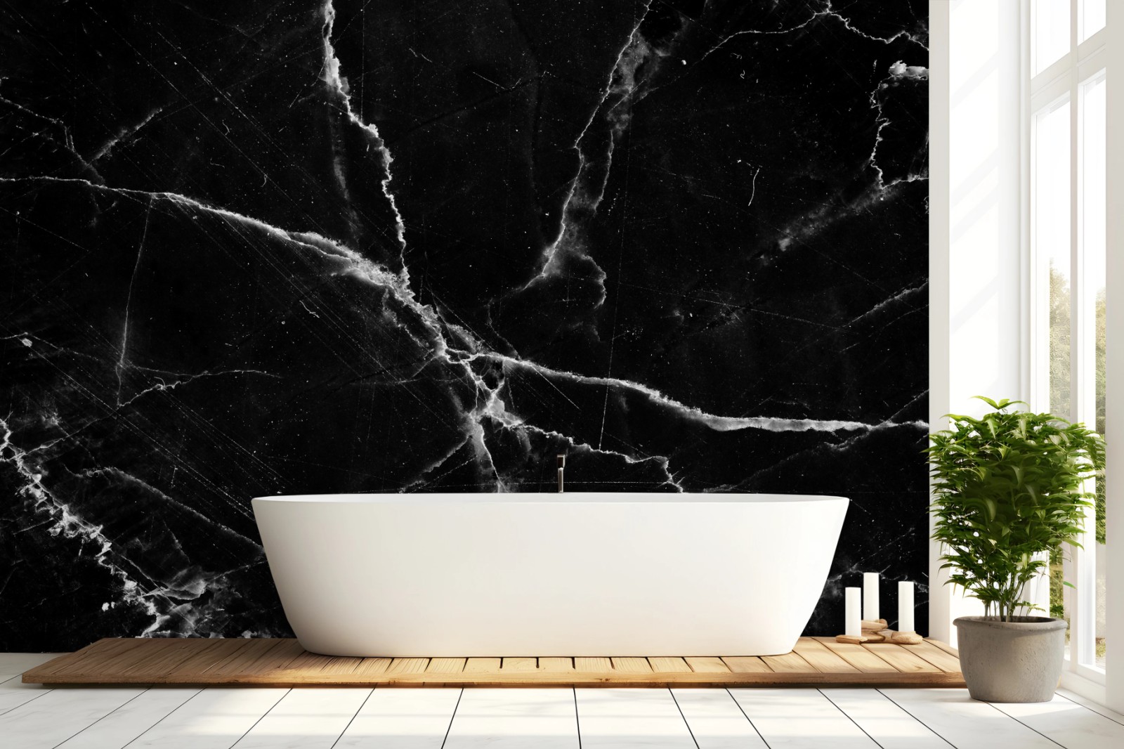 - tło, minimalistyczny, elegancki, czarny marmur, luksusowy, monochromatyczny, białe żyły, wzór kamienia, naklejka ścienna, faktura marmuru