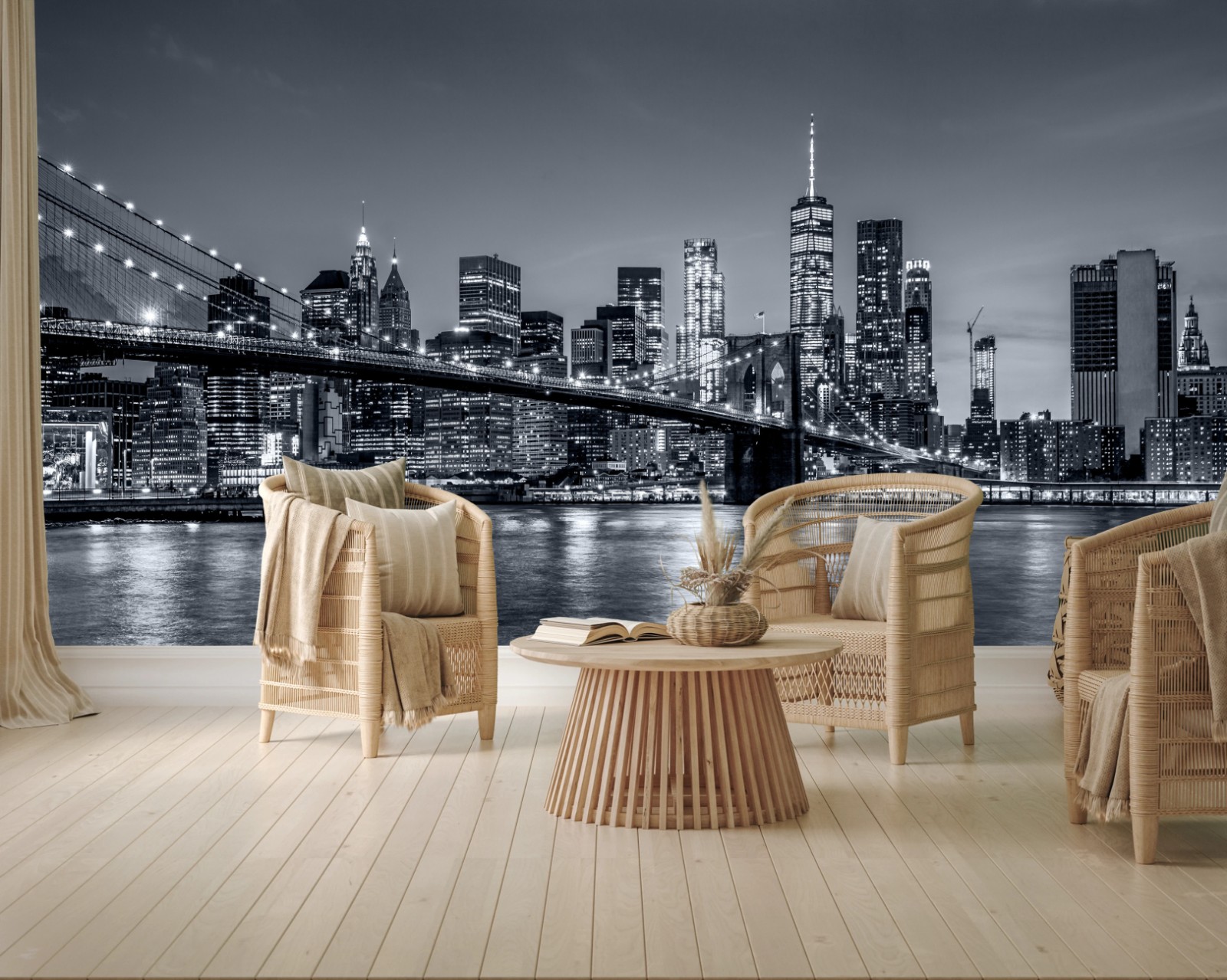 Fototapeta Nowy Jork panorama nocna z Mostem Brooklińskim