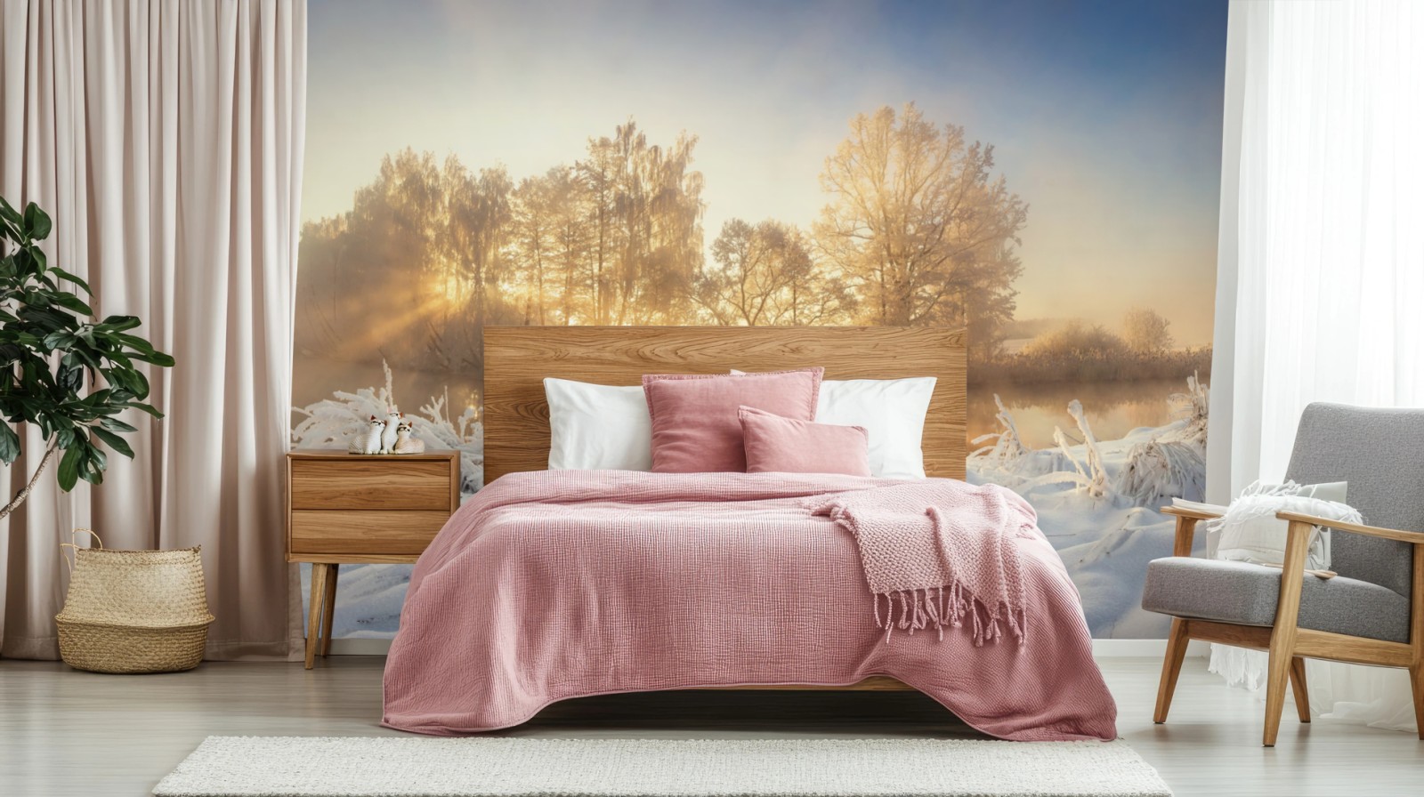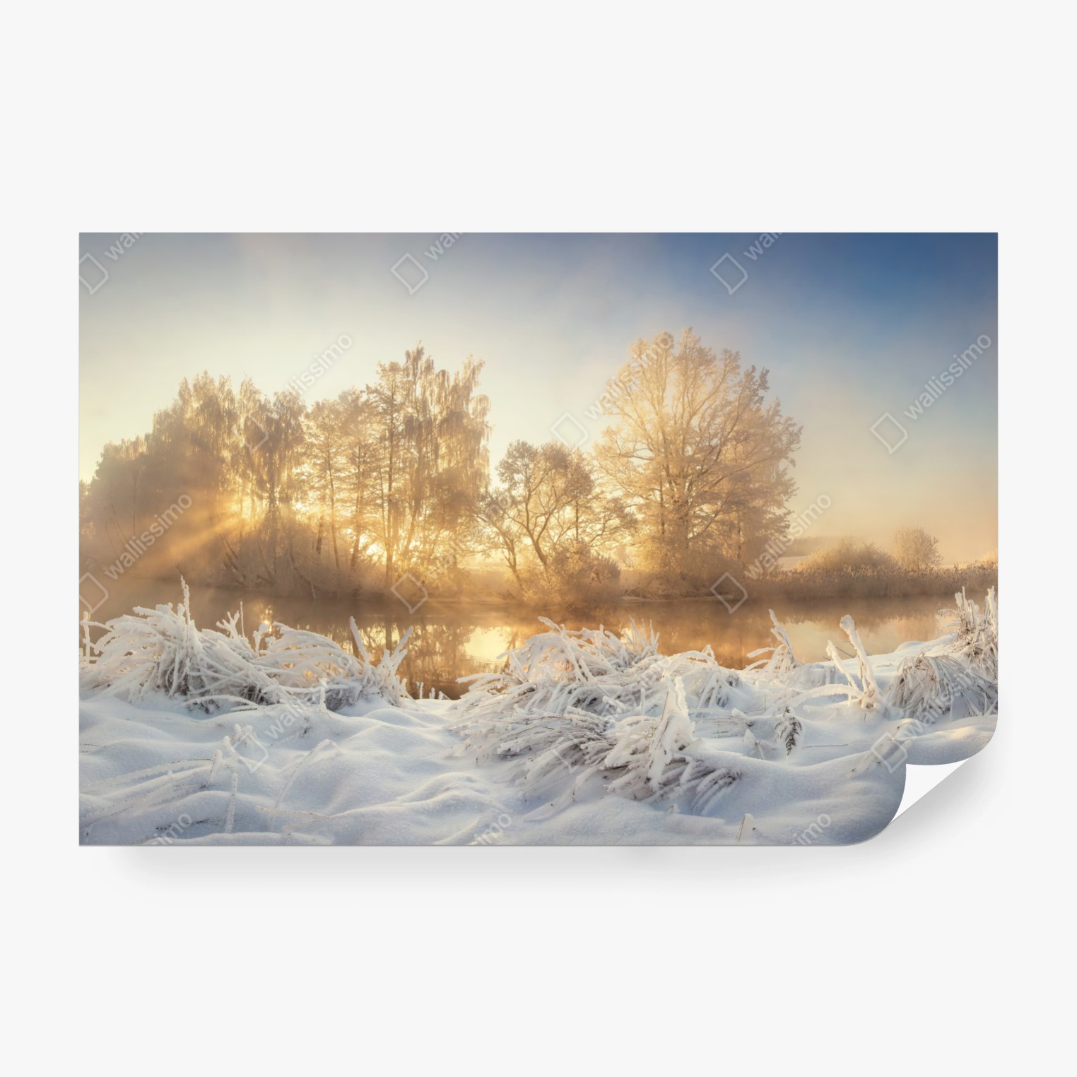 Fototapeta Złoty zimowy wschód słońca nad mroźną rzeką