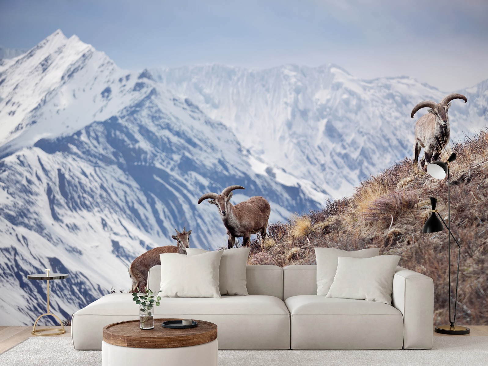 Fototapeta Dzikie niebieskie owce na zboczu Himalajów, Manang, Nepal