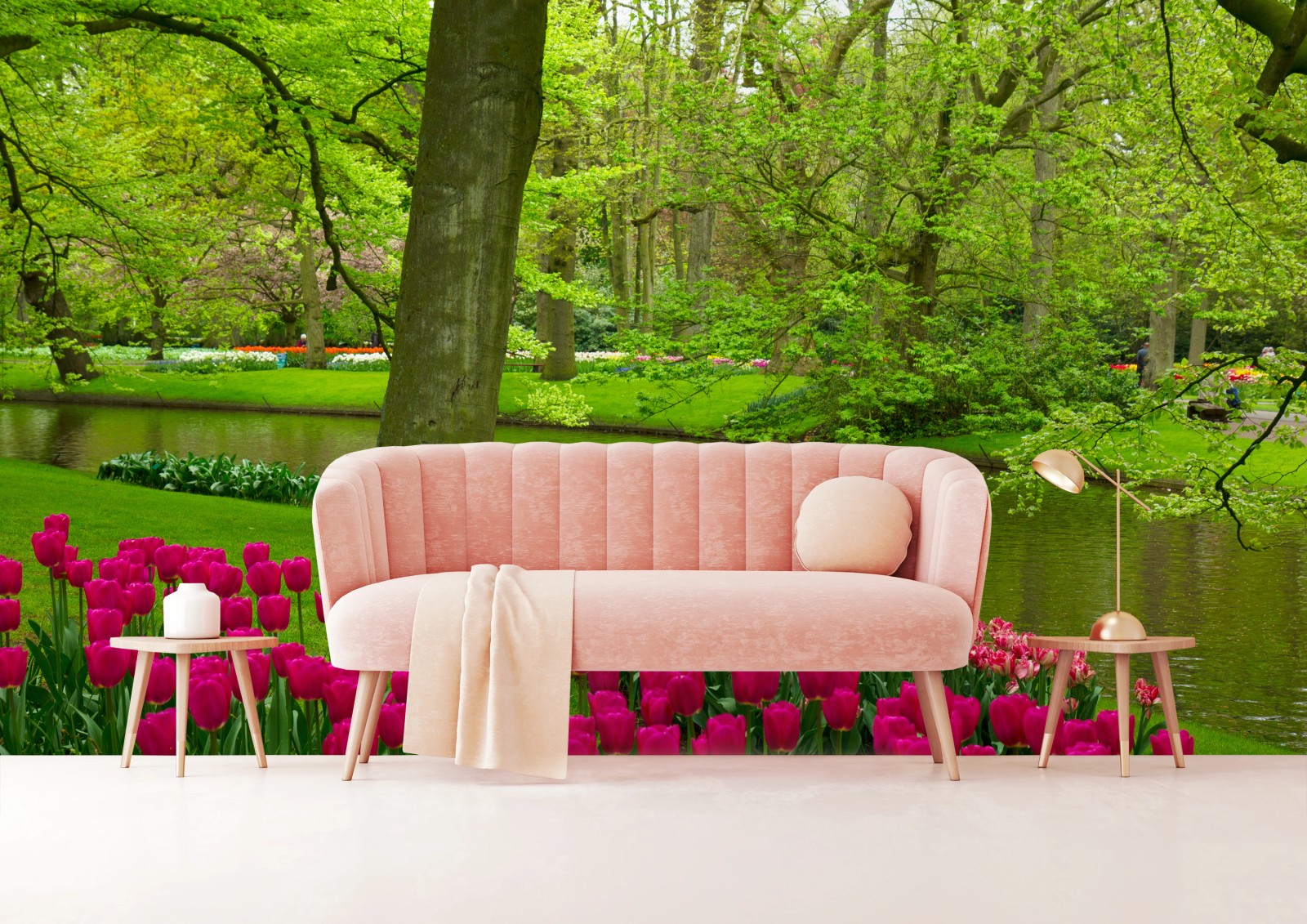 Fototapeta Wiosenny ogród tulipanów nad kanałem