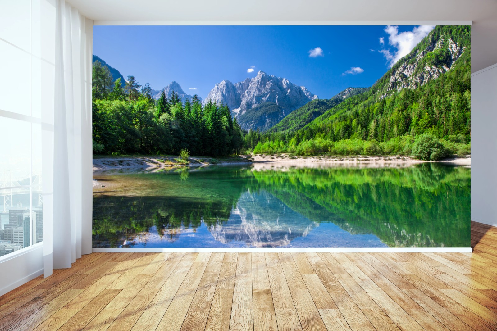 Fototapeta Alpejskie jezioro z odbiciem w zielonych górach