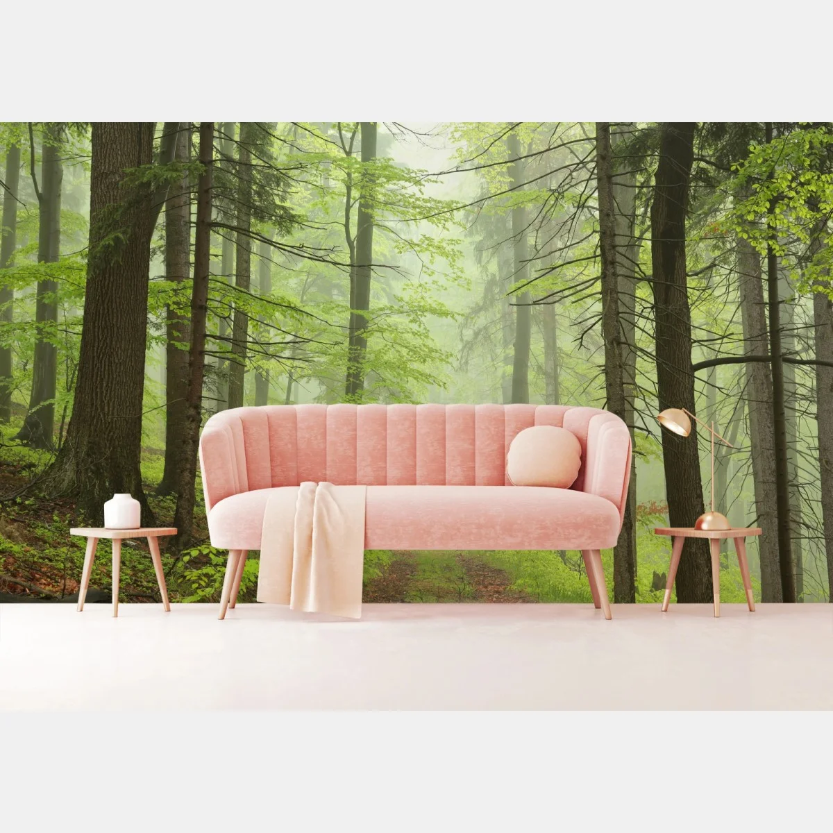 Fototapeta Mglisty zielony leśny szlak
