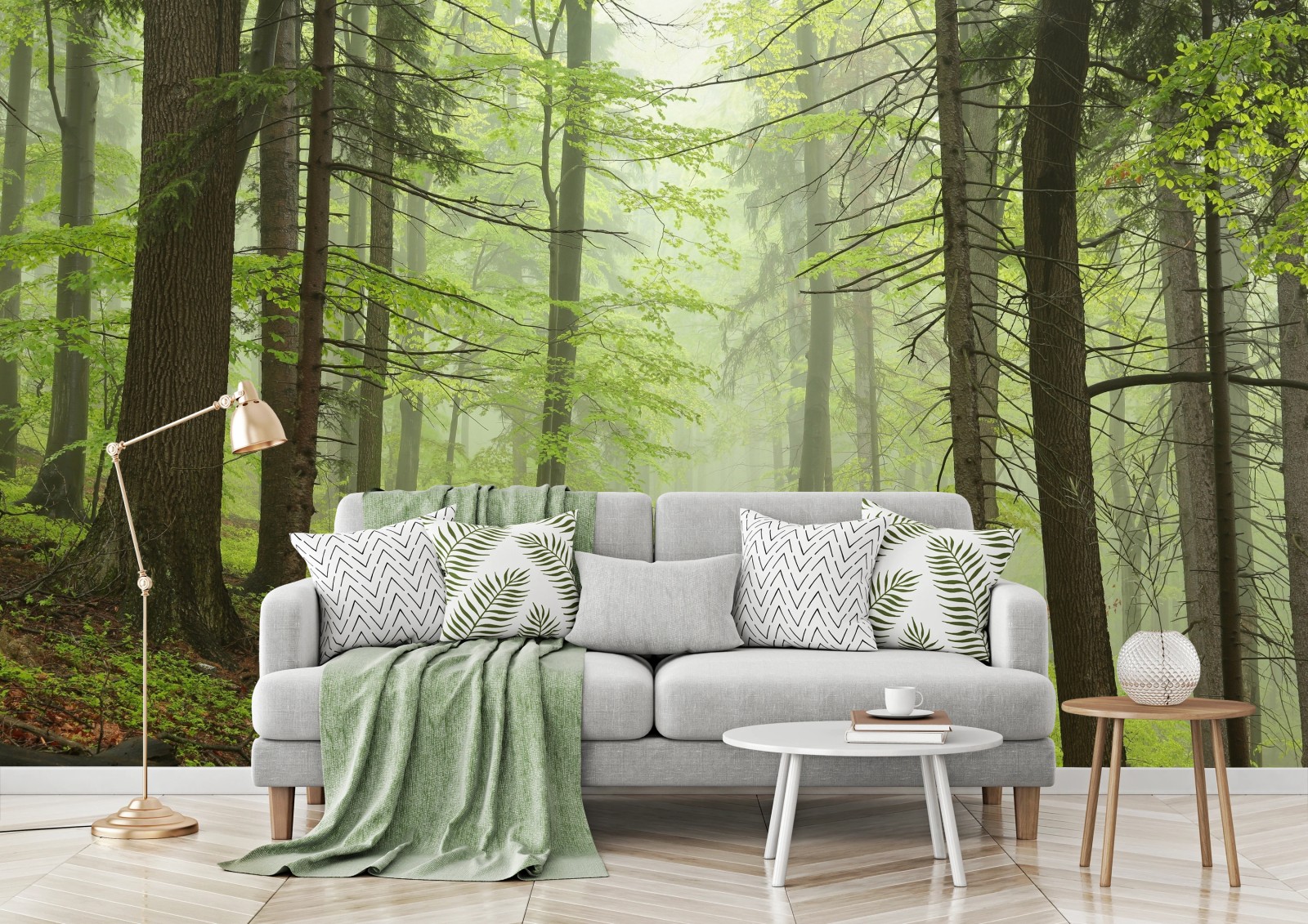 Fototapeta Mglisty zielony leśny szlak