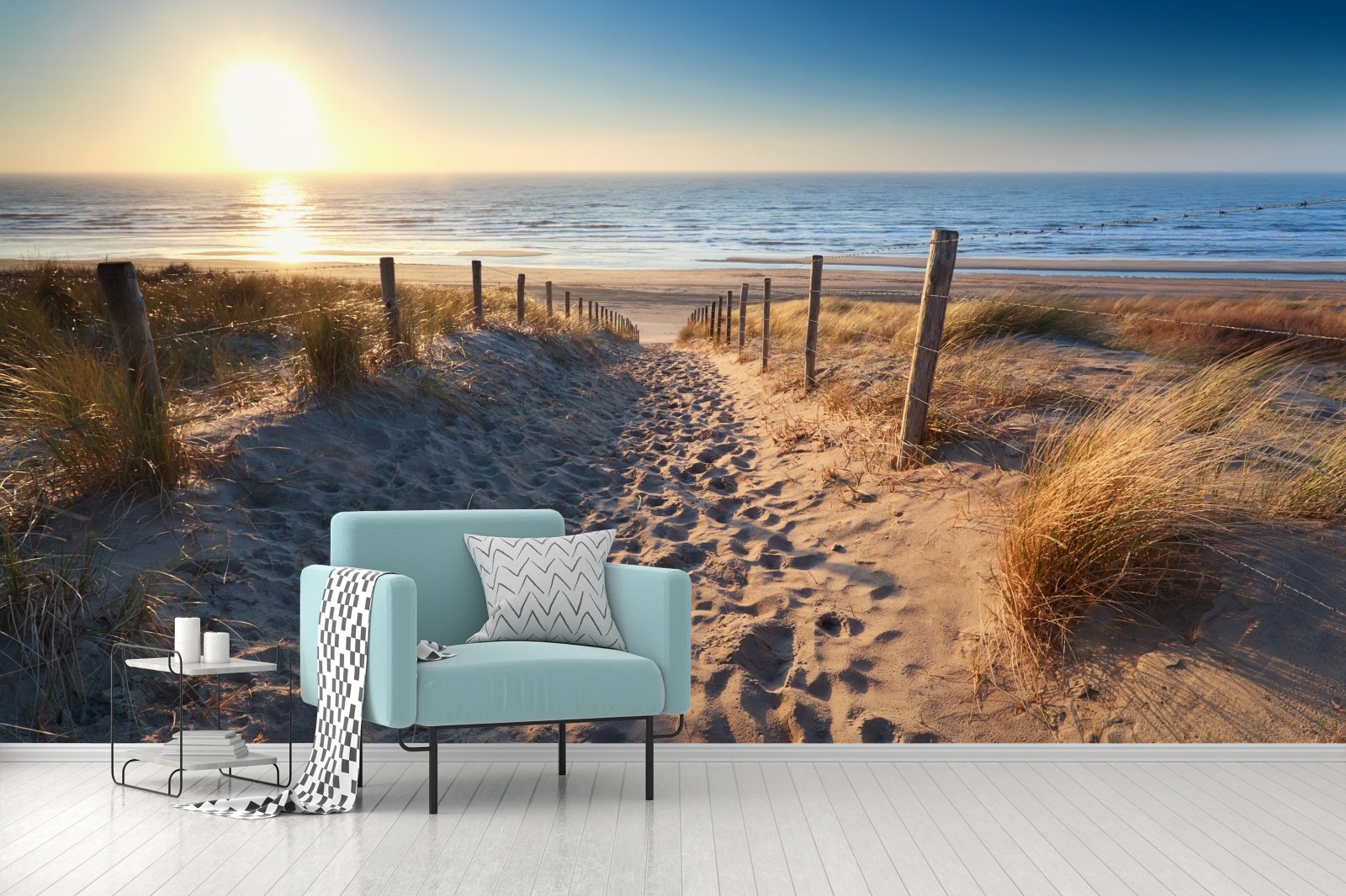 Fototapeta Ścieżka na plażę o zachodzie słońca w Zandvoort
