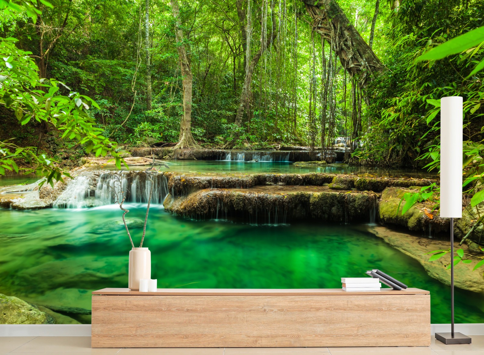 Fototapeta Spokojne turkusowe baseny przy wodospadzie Erawan