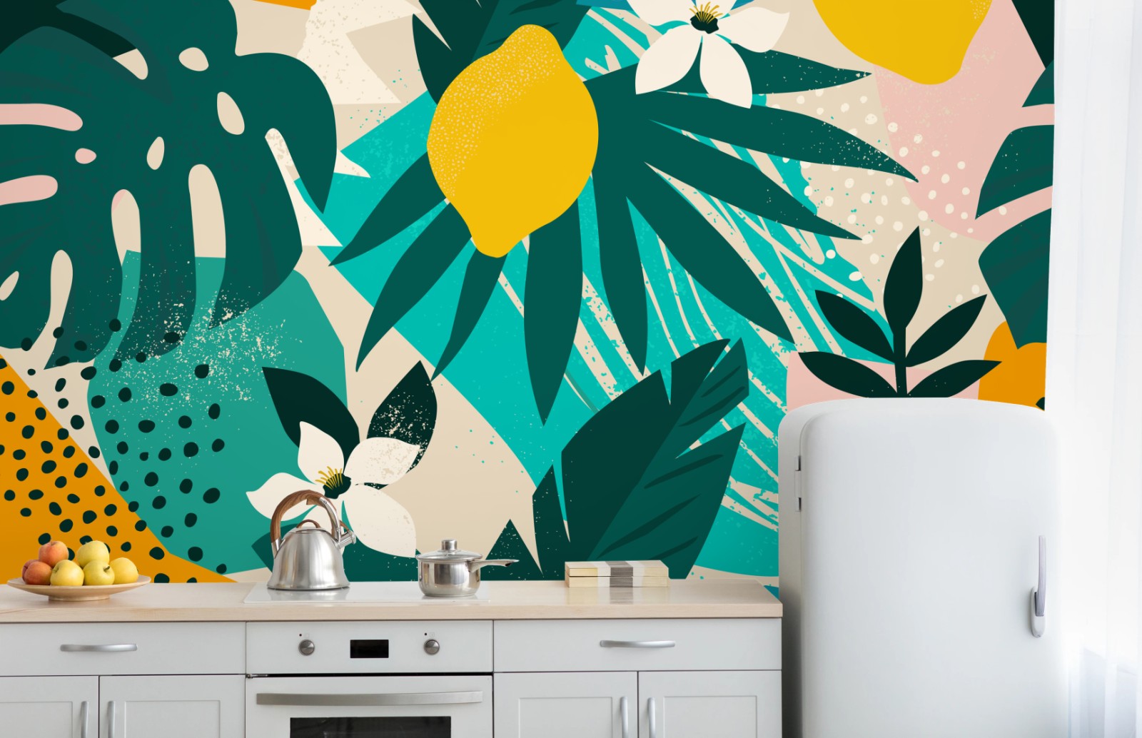 Fototapeta Tropikalny wzór z liśćmi i cytrynami