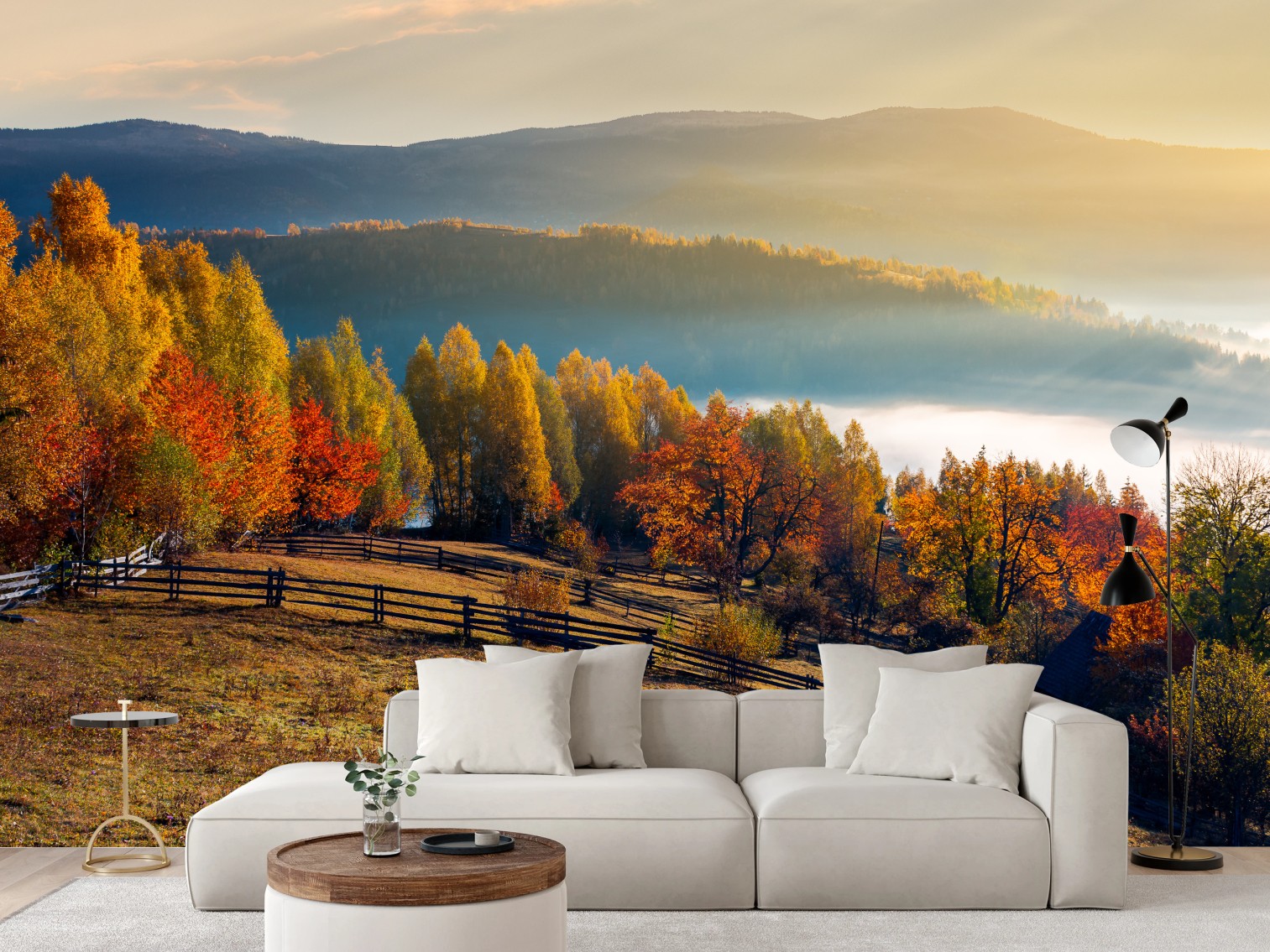 Fototapeta Mglisty jesienny wschód słońca na wsi