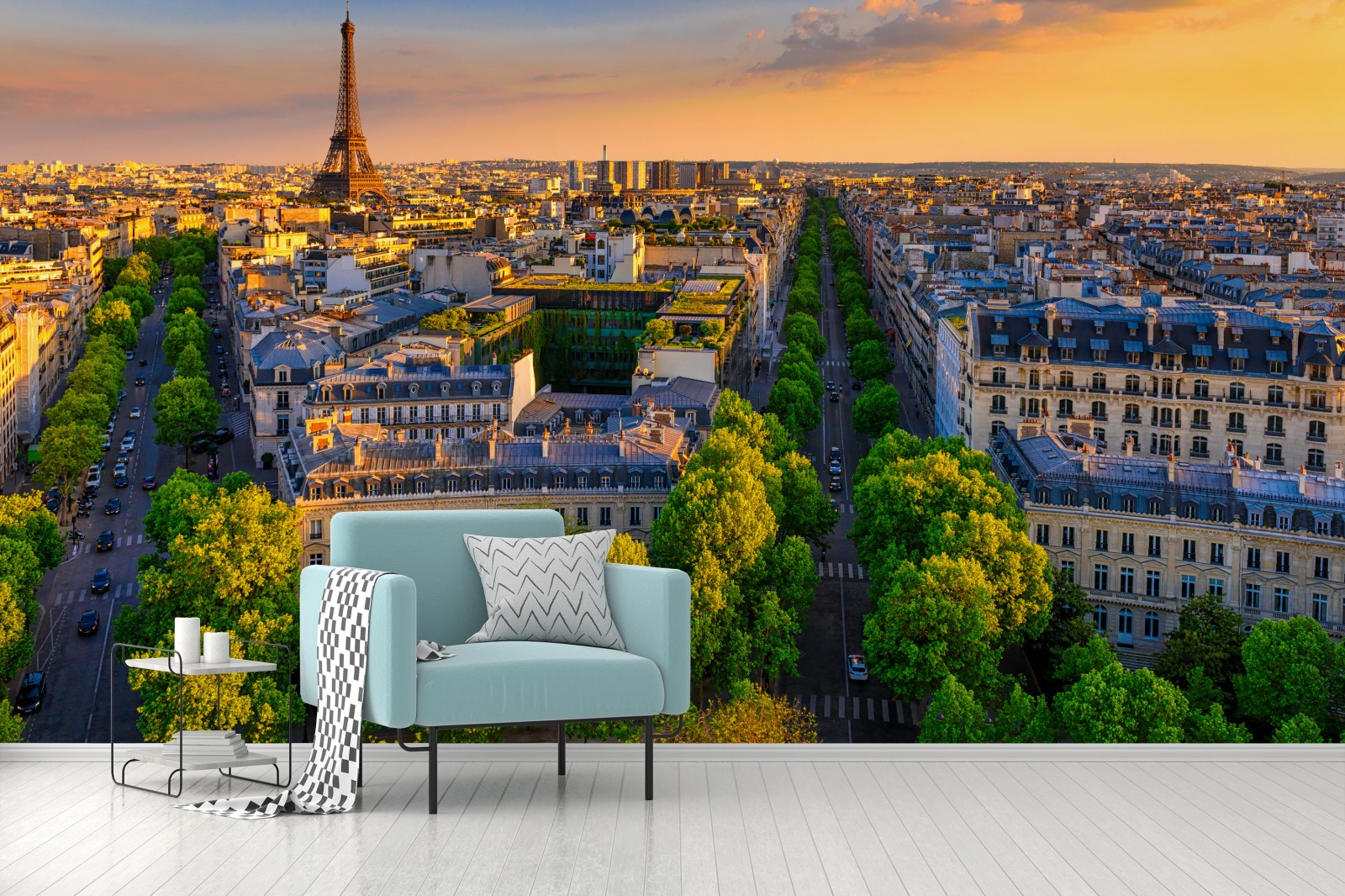 Fototapeta Zachód słońca nad Paryżem z Wieżą Eiffla