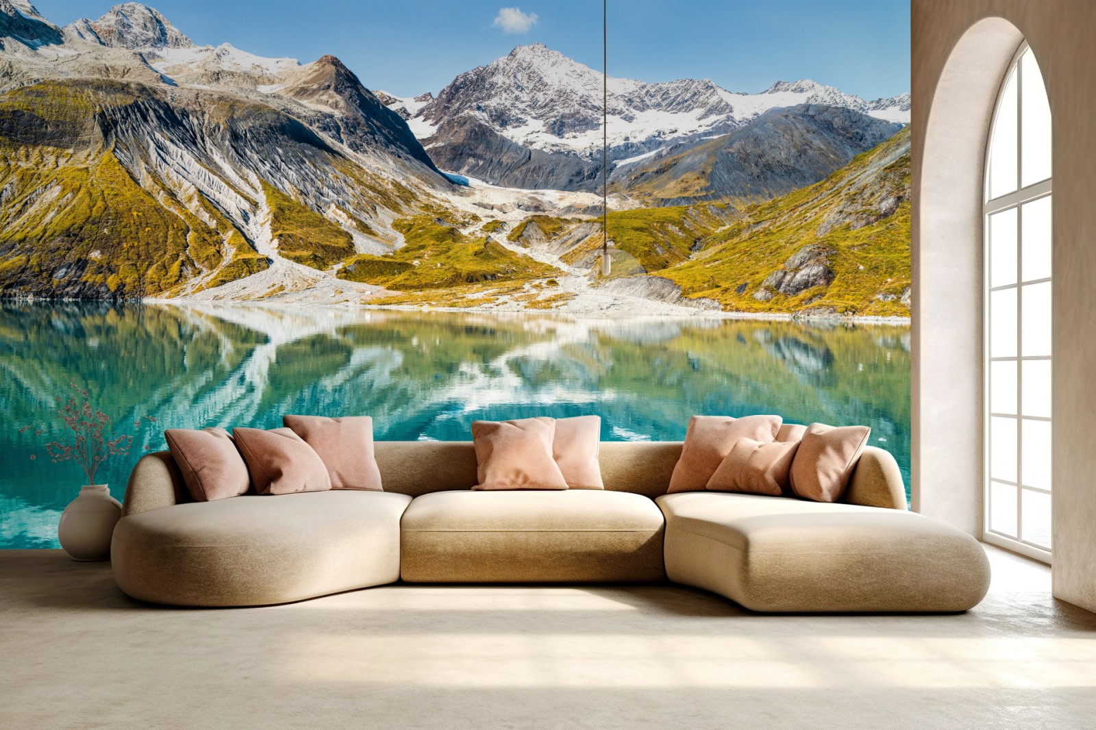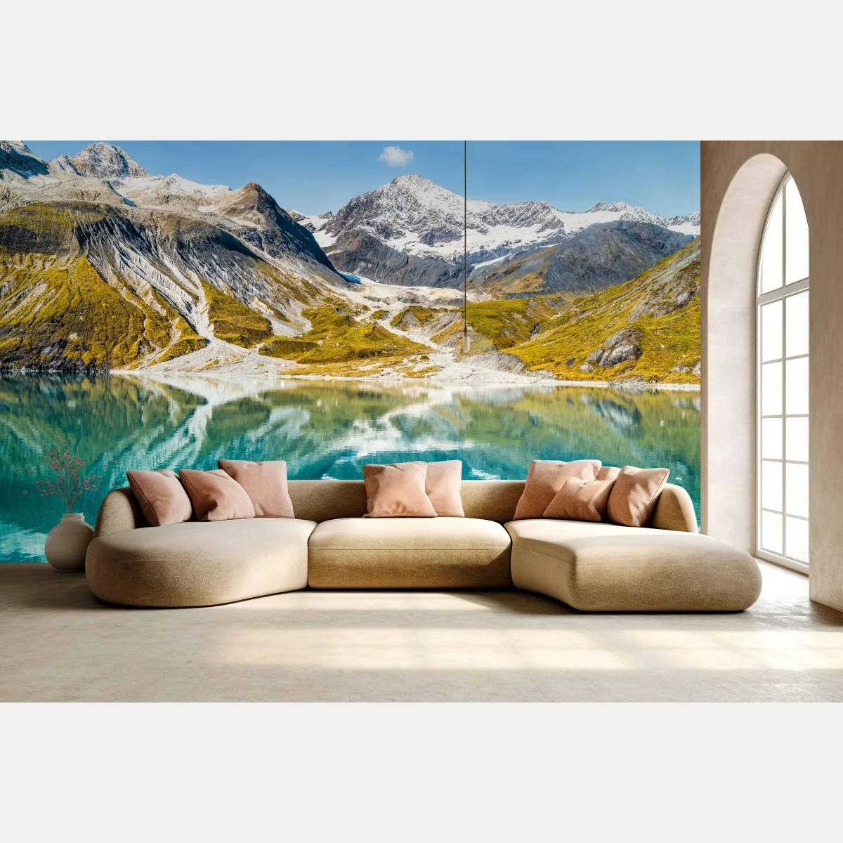Fototapeta Spokojne alpejskie jezioro z ośnieżonymi szczytami