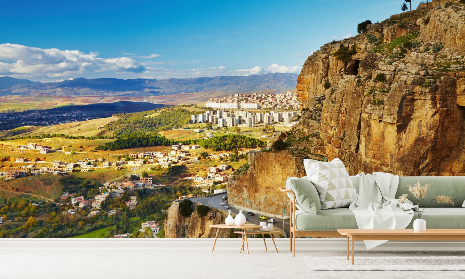 - podróże, panorama miasta, architektura, klify, kręta droga, konstantyna, algieria, wąwóz, zabudowa, widok miejski
