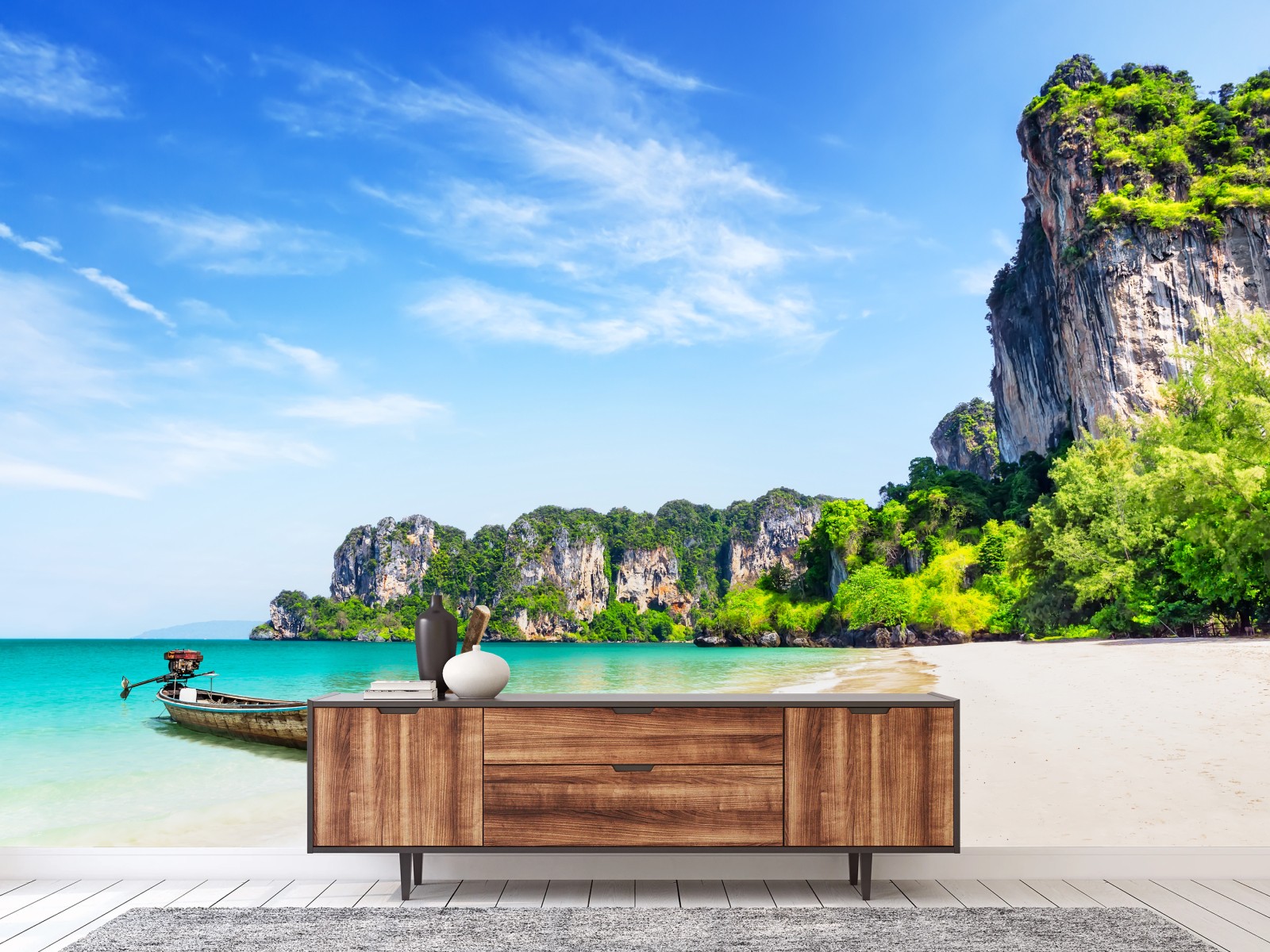 Fototapeta Tradycyjna łódź na plaży Railay, Tajlandia
