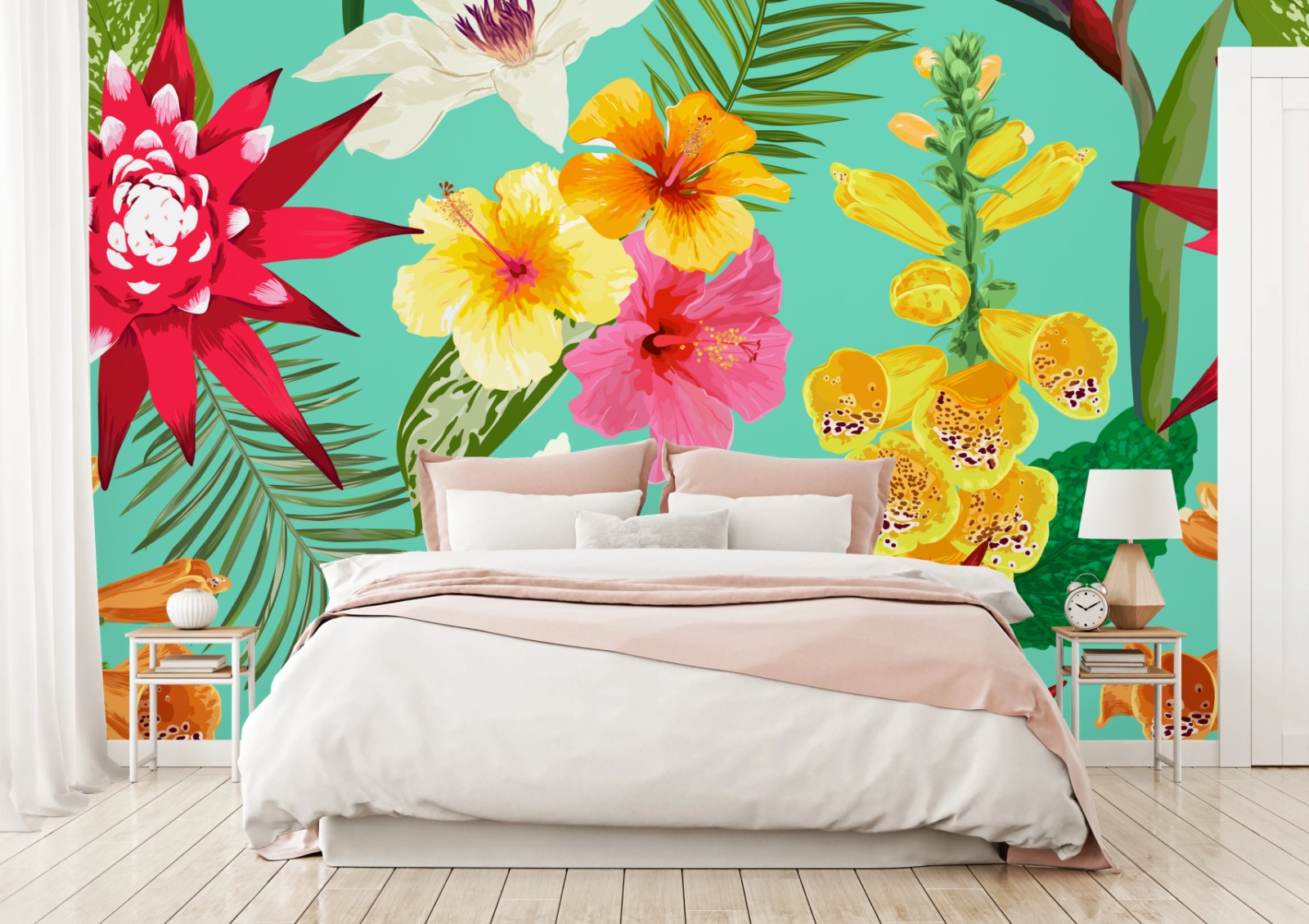 Fototapeta Tropikalne kwiaty na turkusowym tle