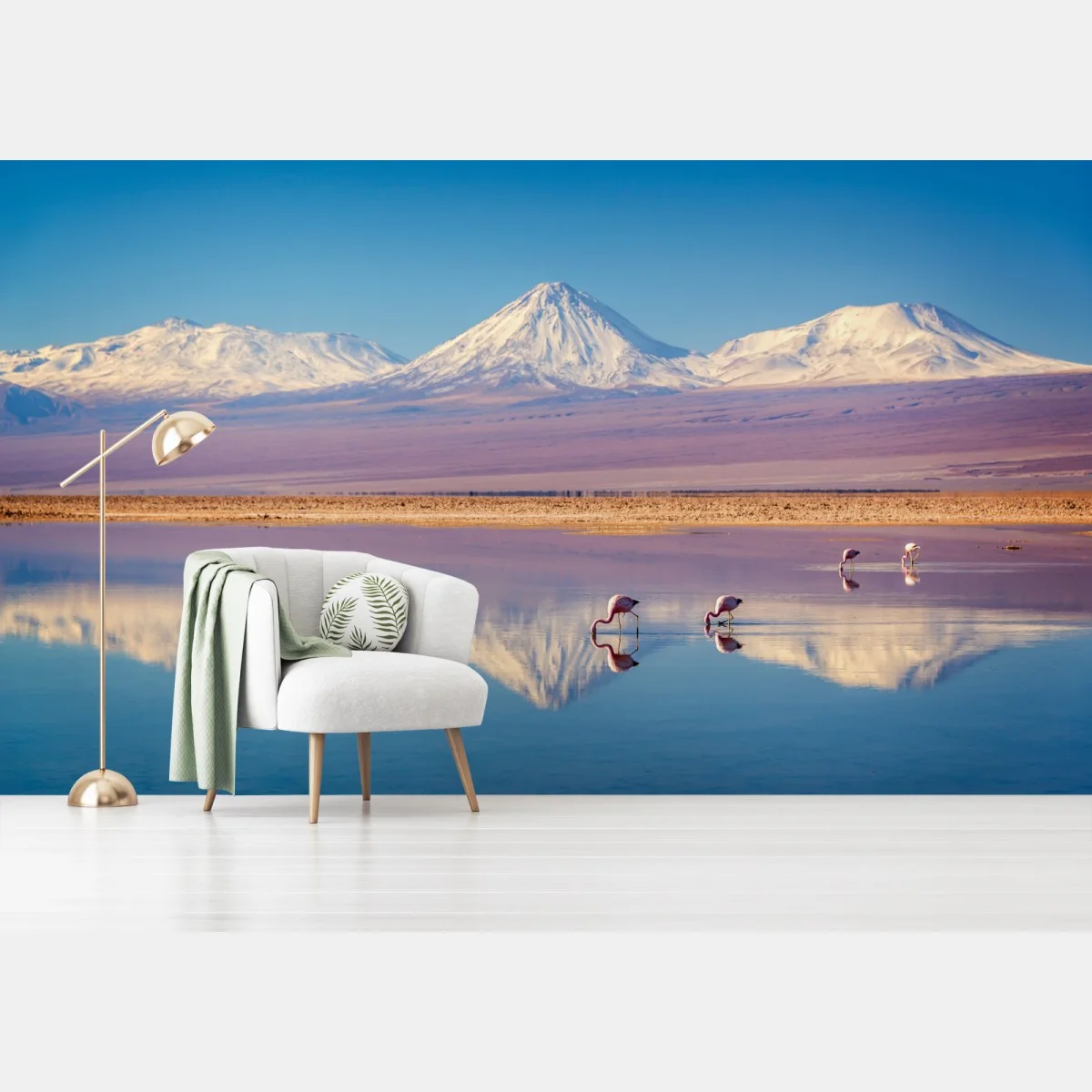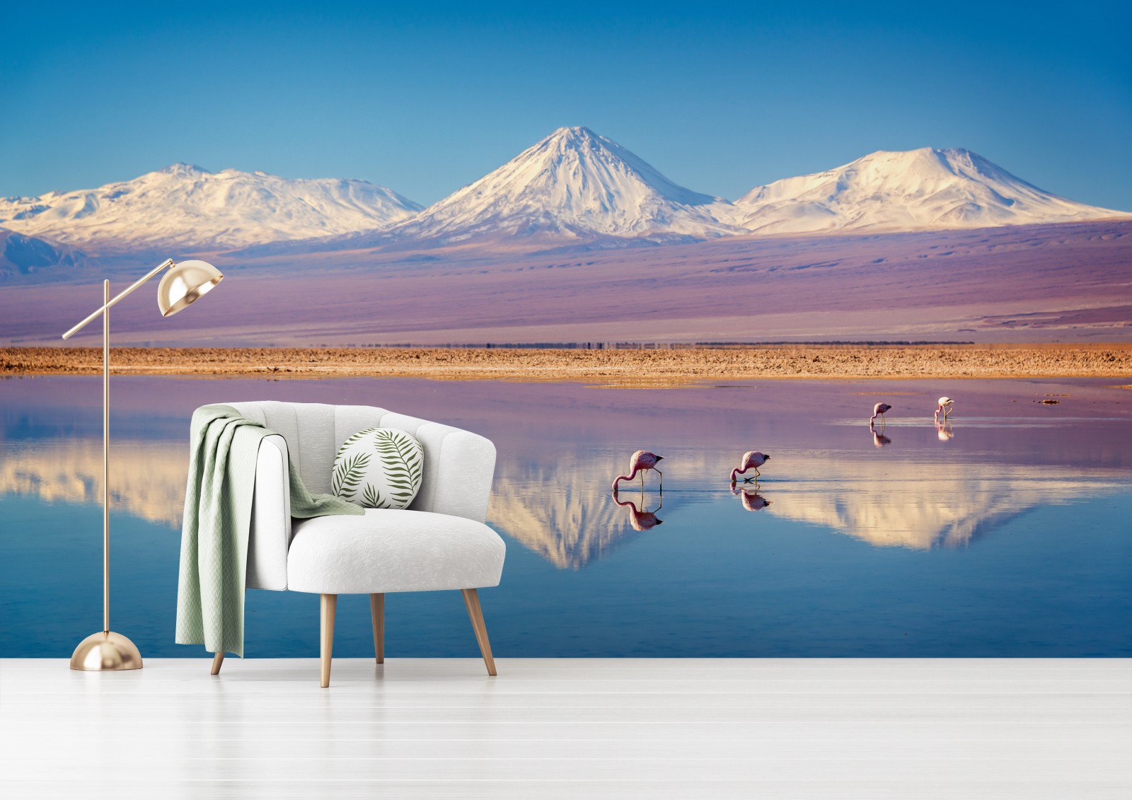- góry, odbicie, śnieg, przyroda, flamingi, podróż, andy, licancabur, atacama, laguna chaxa