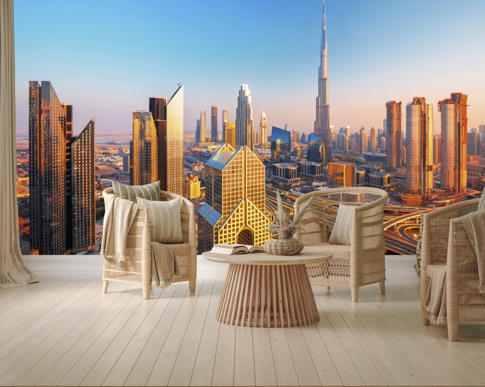 Fototapeta Panorama Dubaju z Burj Khalifa o zachodzie słońca