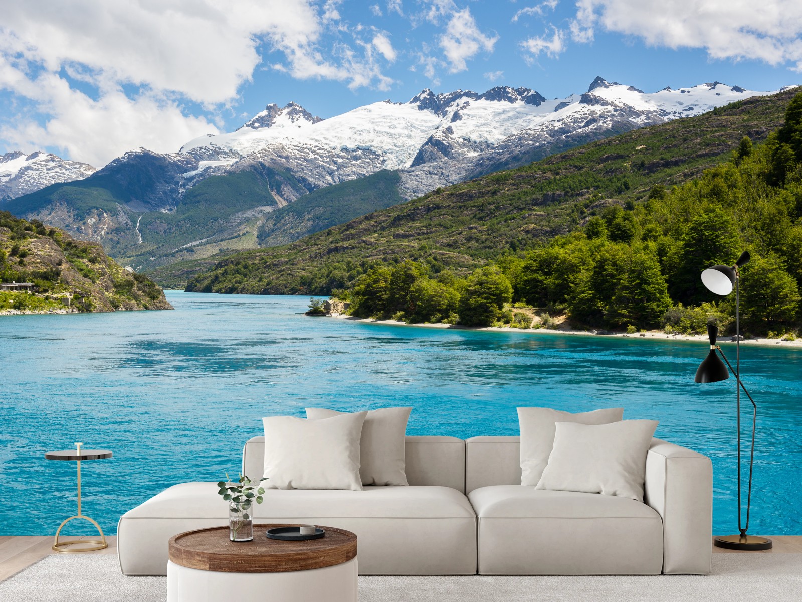 Fototapeta Turkusowe jezioro górskie z ośnieżonymi szczytami