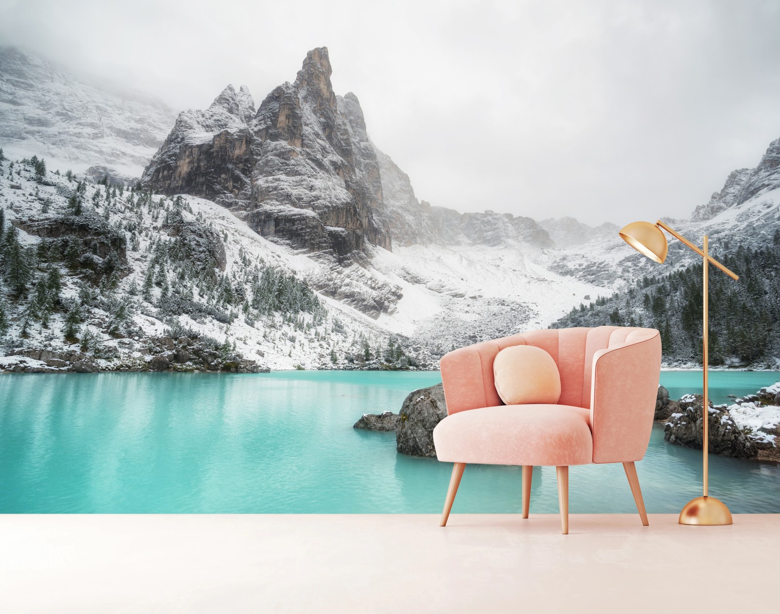 Fototapeta Turkusowe jezioro alpejskie pod ośnieżonymi szczytami