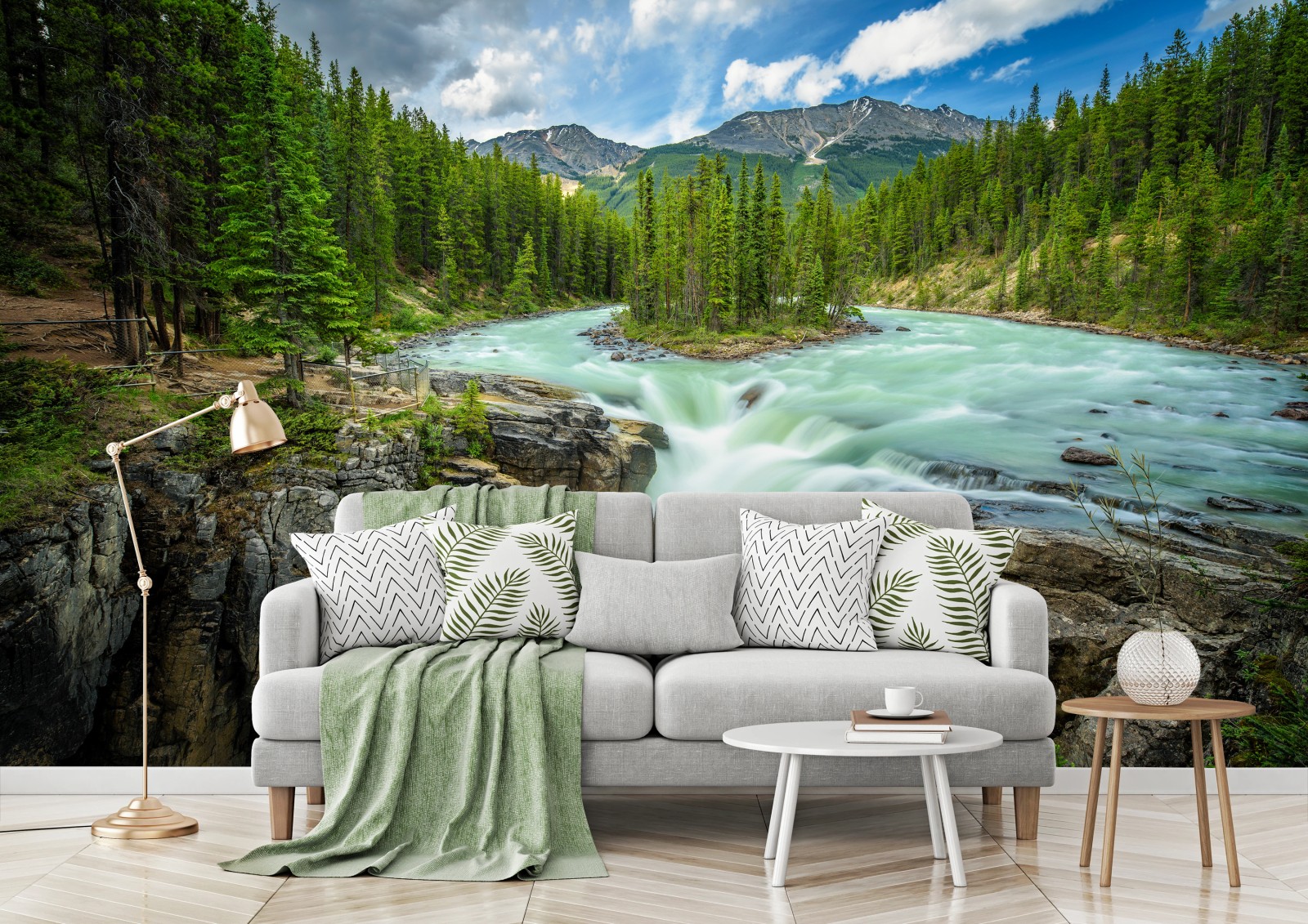 Fototapeta Mglisty wąwóz przy Upper Sunwapta Falls, Jasper National Park