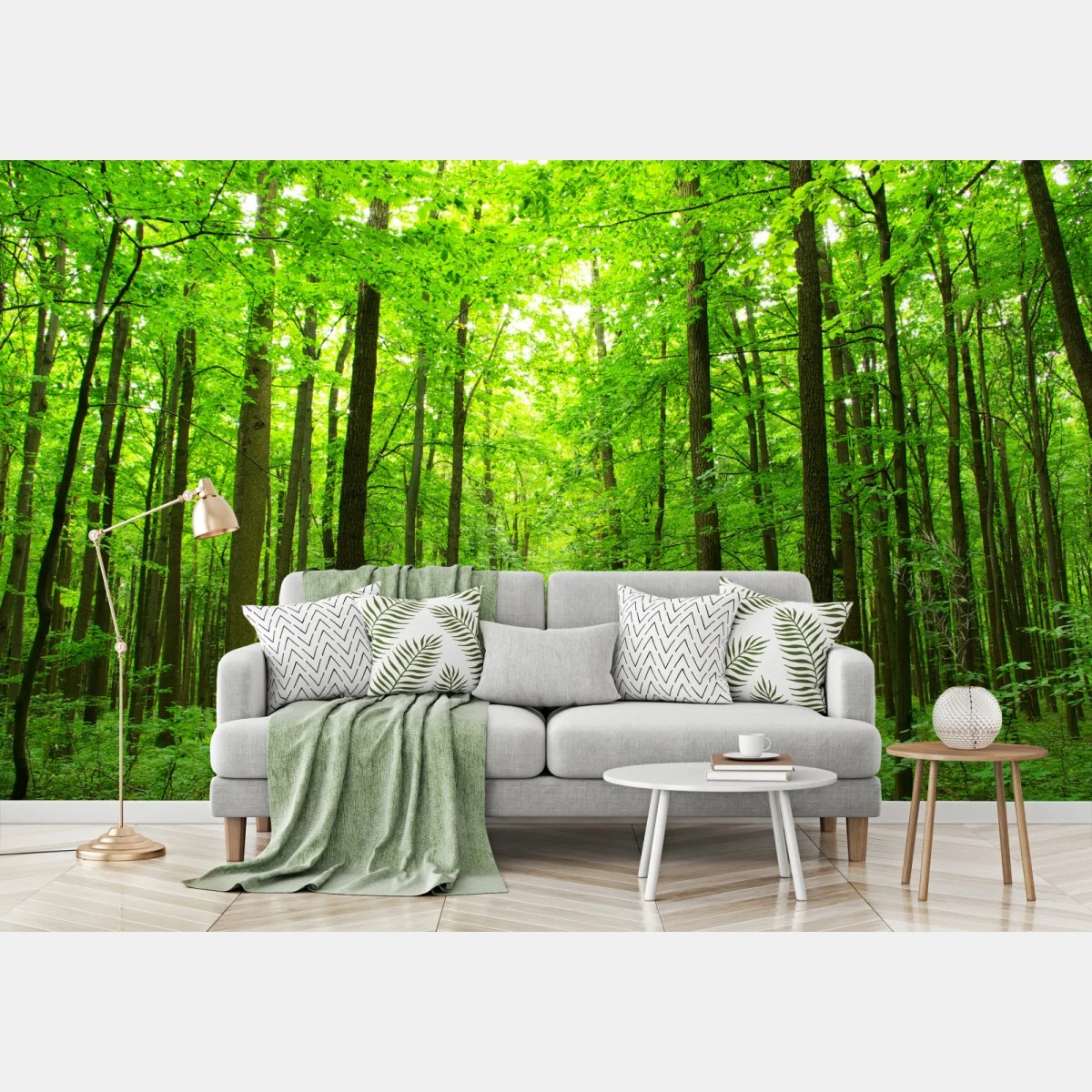 spokojna ścieżka wśród zielonego lasu, wprowadzająca do wnętrza naturalny spokój i świeżość.WięcejMniej