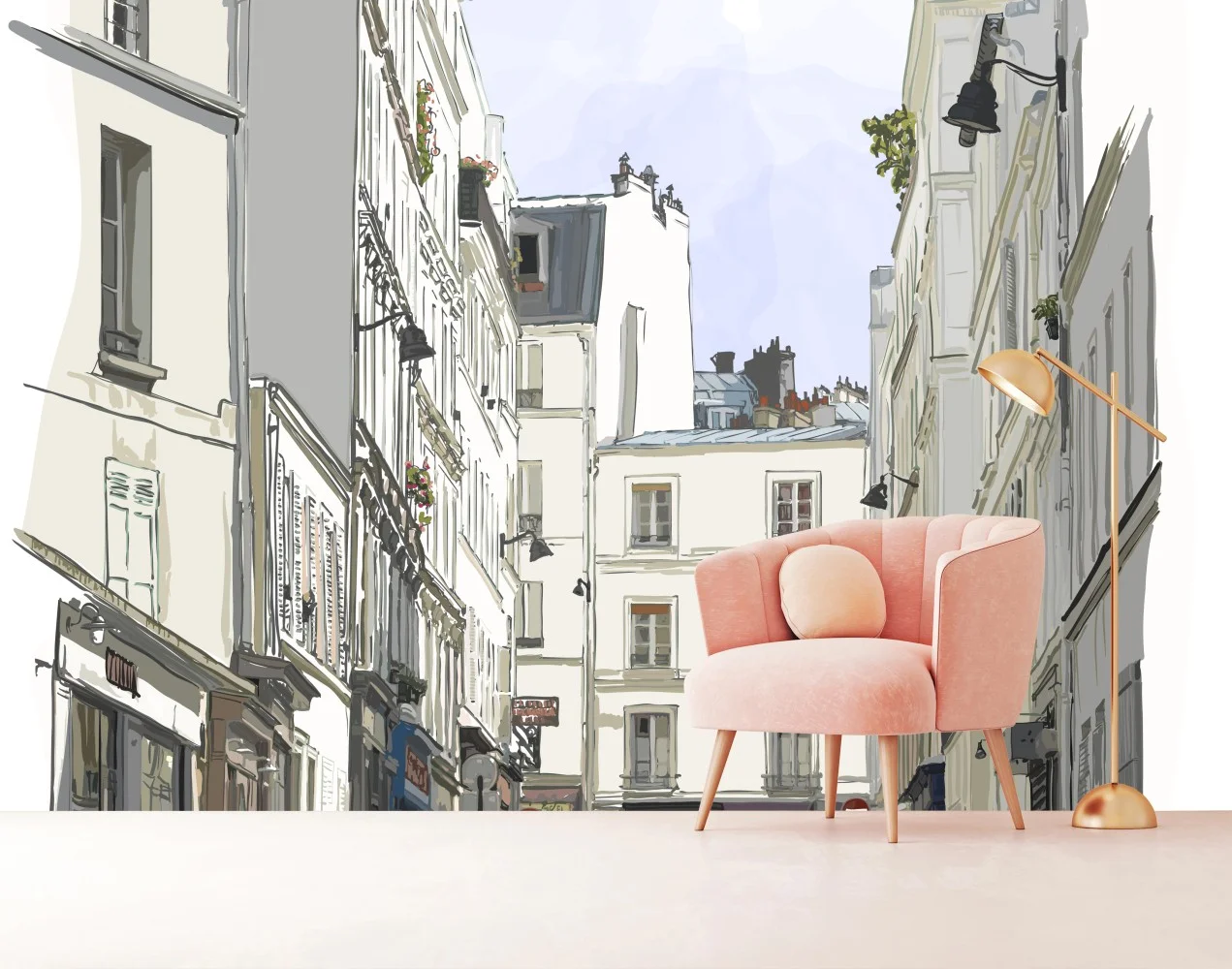 - ilustracja, podróże, architektura, miejski, akwarela, ulica, paryż, pejzaż miejski, budynki, montmartre