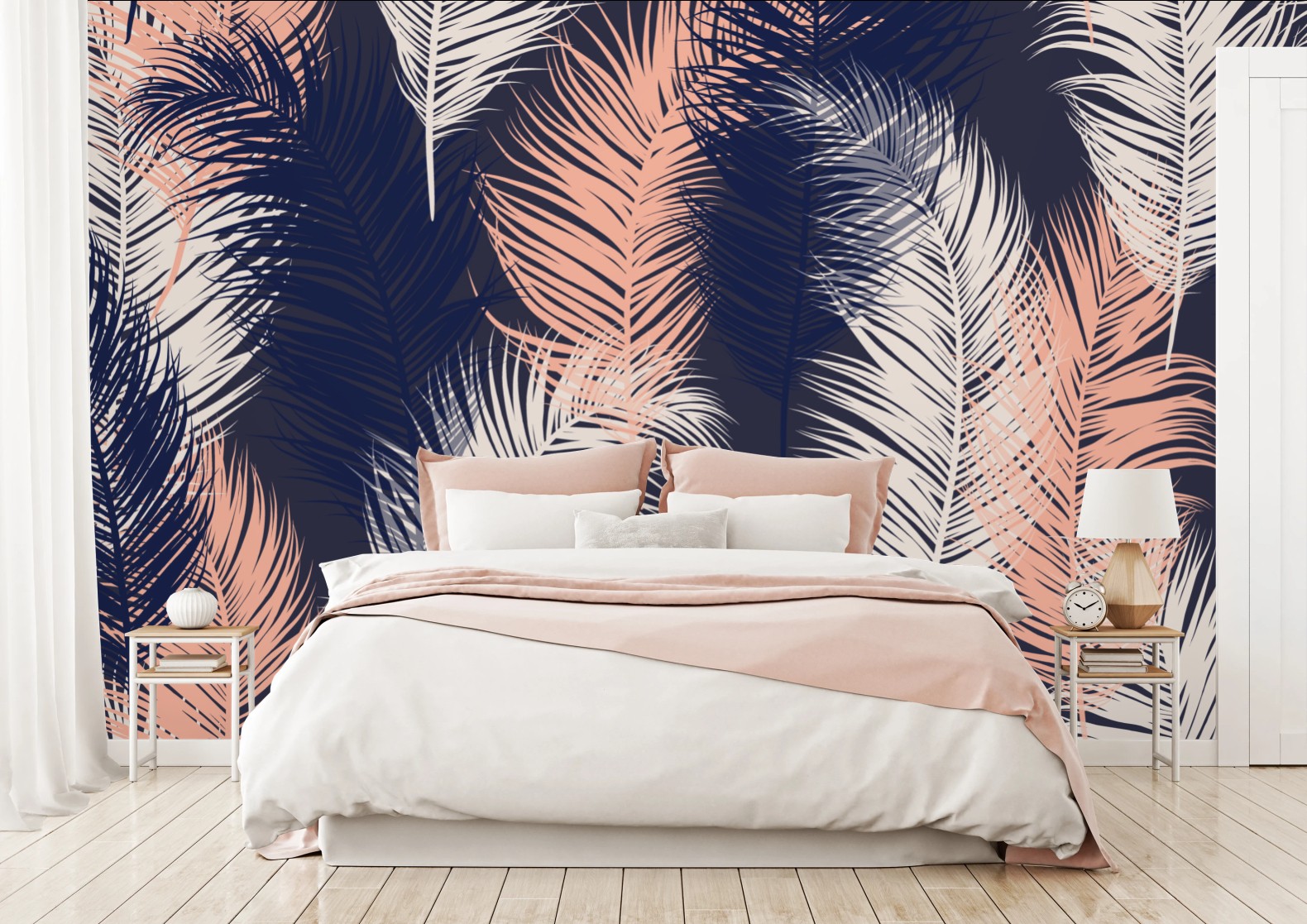 Fototapeta Wzór z piórami w granacie i różu