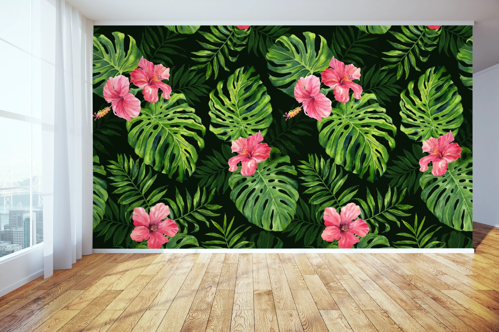 Fototapeta Tropikalny wzór z monsterą i hibiskusem