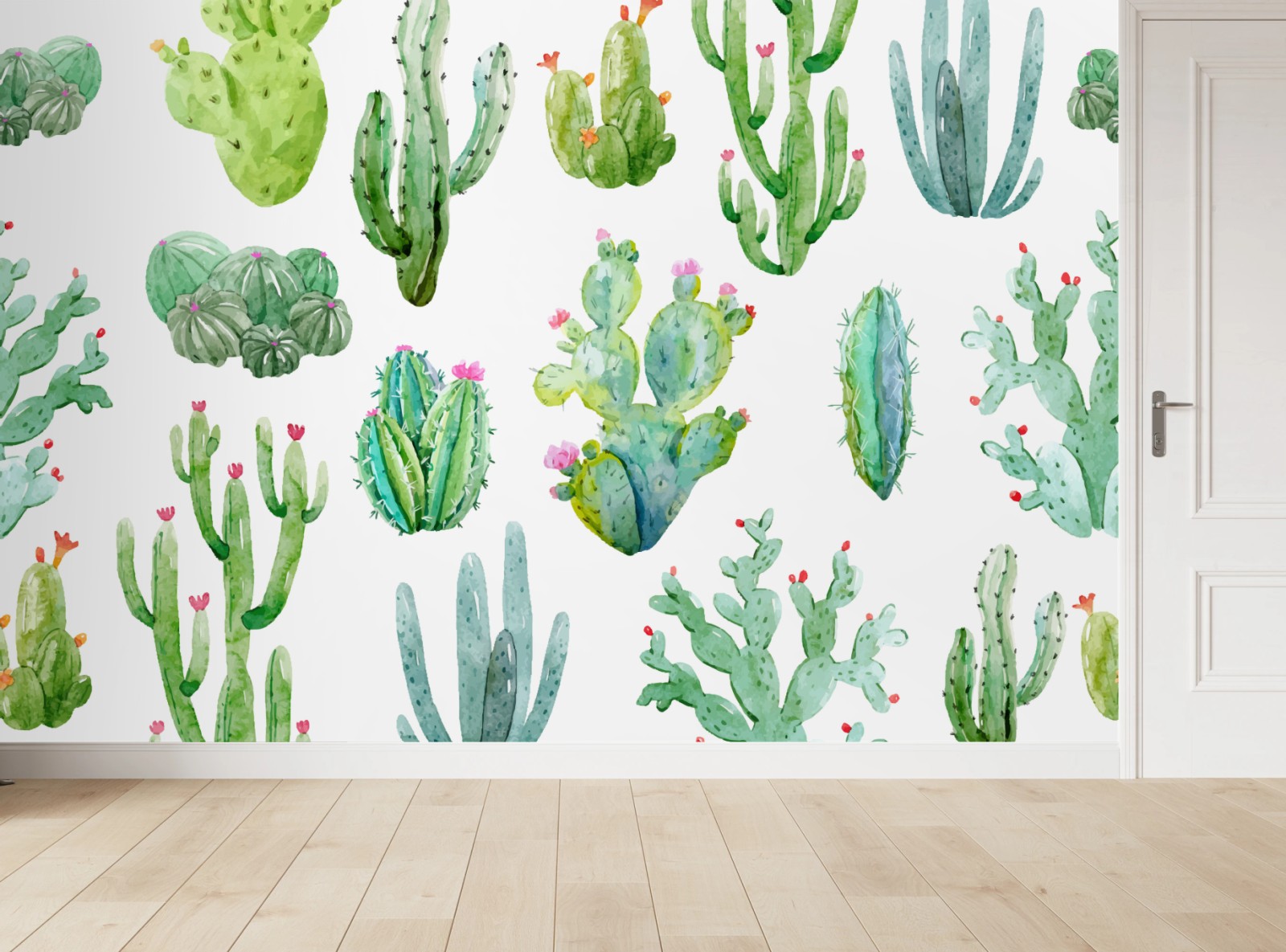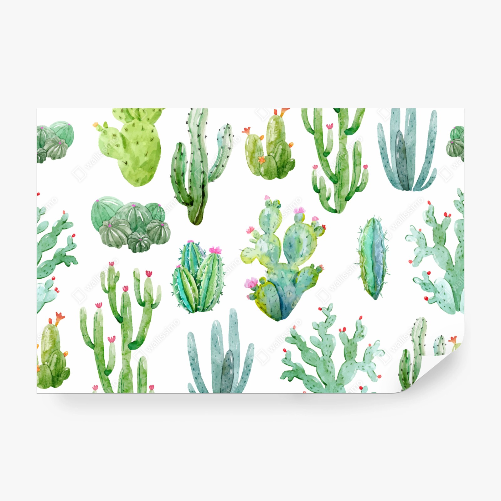 Fototapeta Akwarelowy wzór ogrodu kaktusów