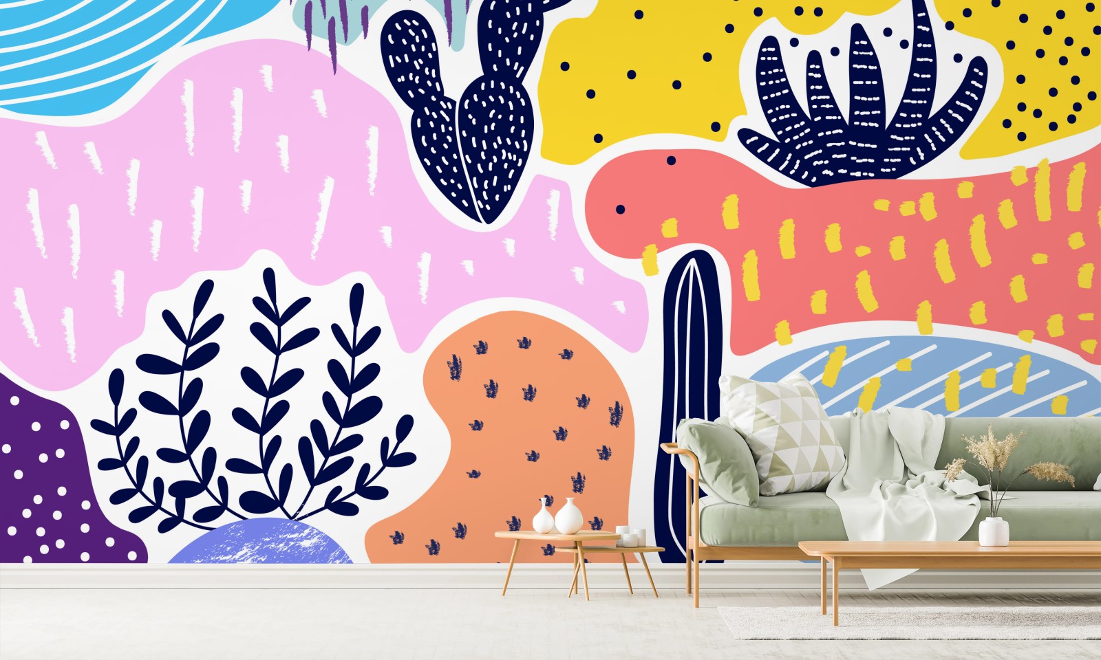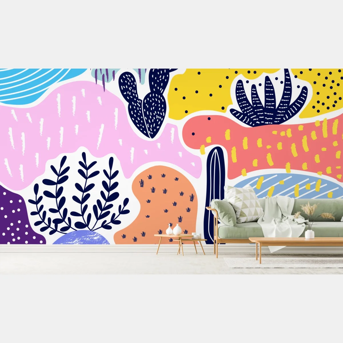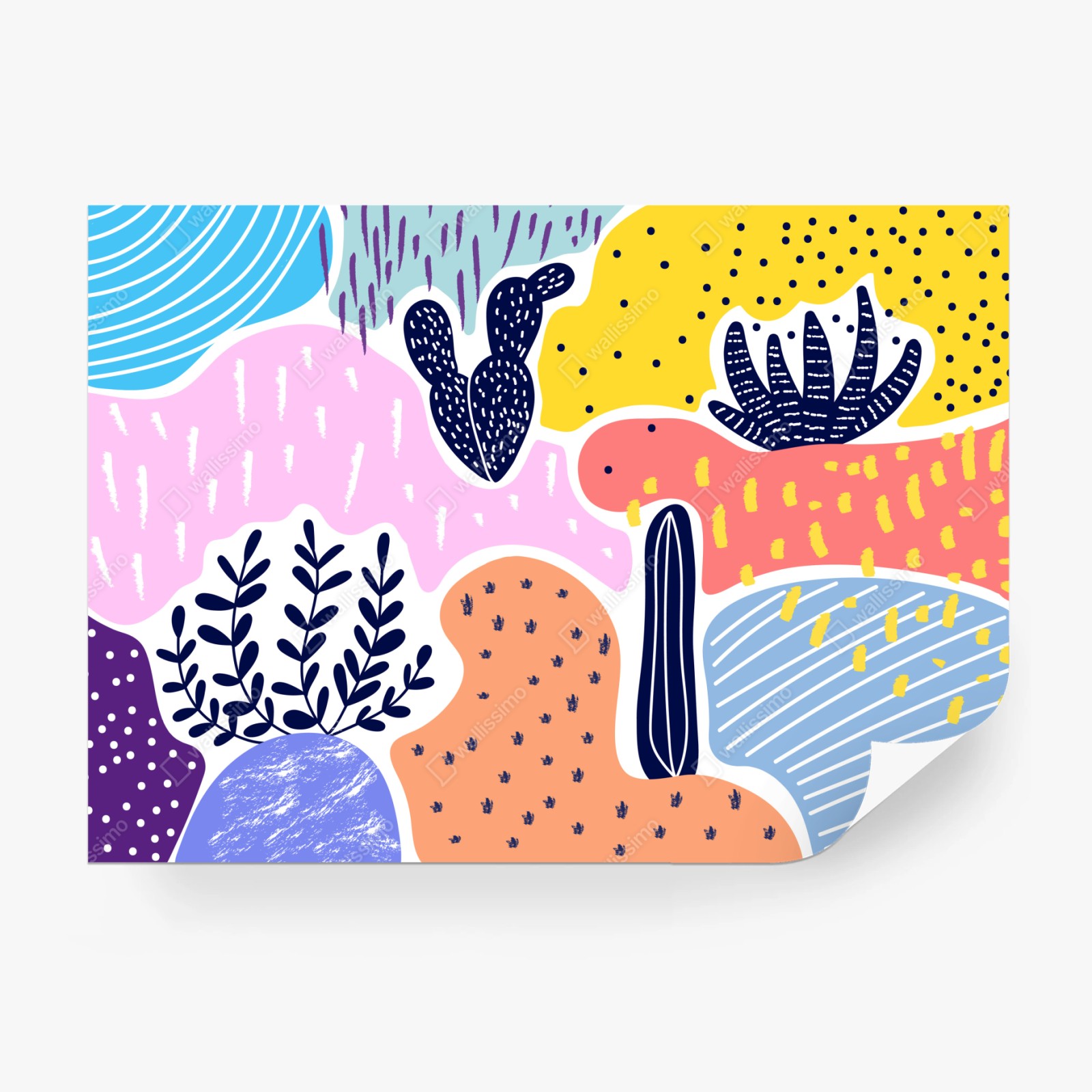 - doodle, kolorowy, abstrakcja, wzór, dekoracja, pastelowy, nowoczesny, roślinny, zabawny, kształty