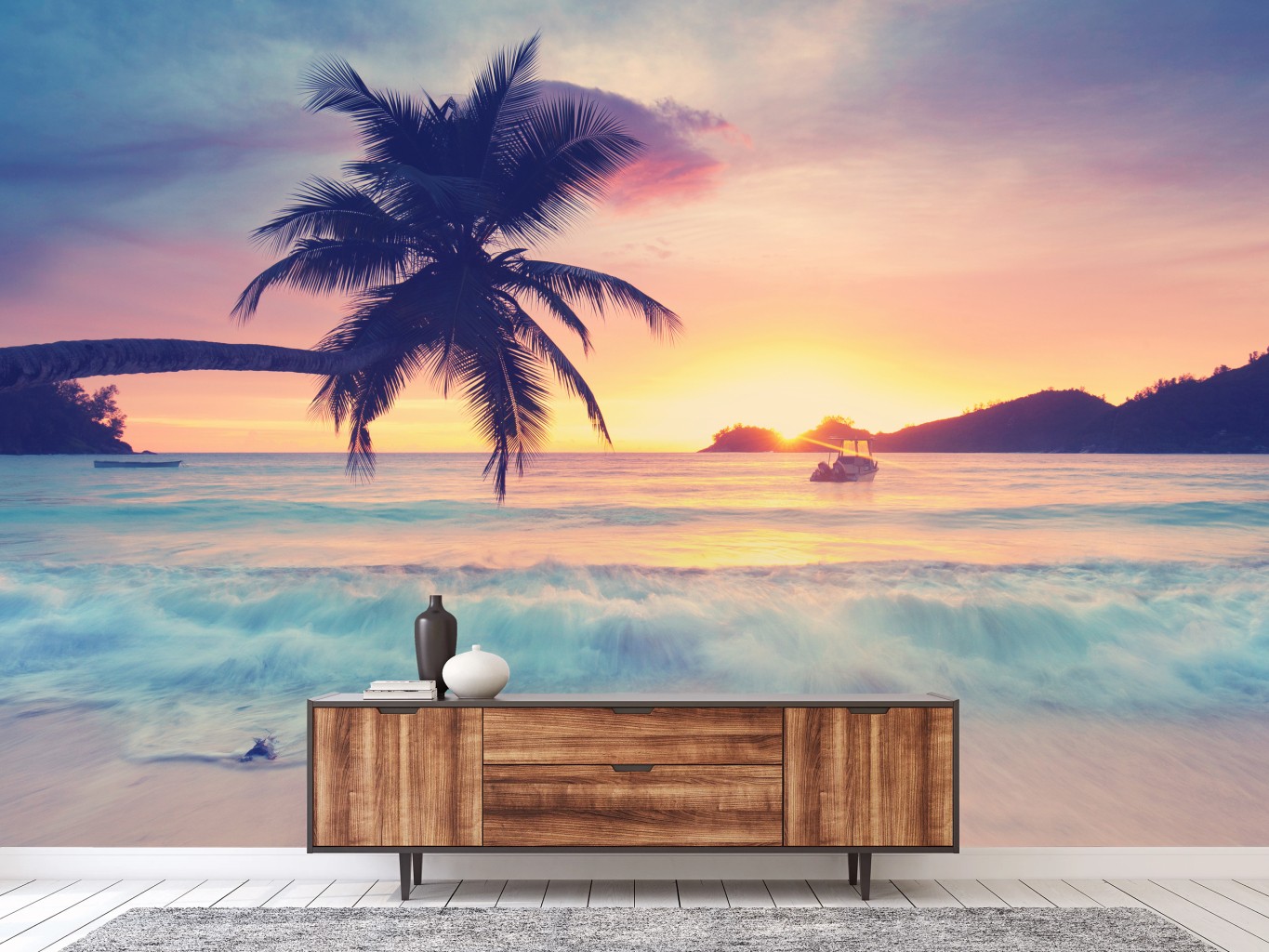 Fototapeta Tropikalny pastelowy zachód słońca nad morzem