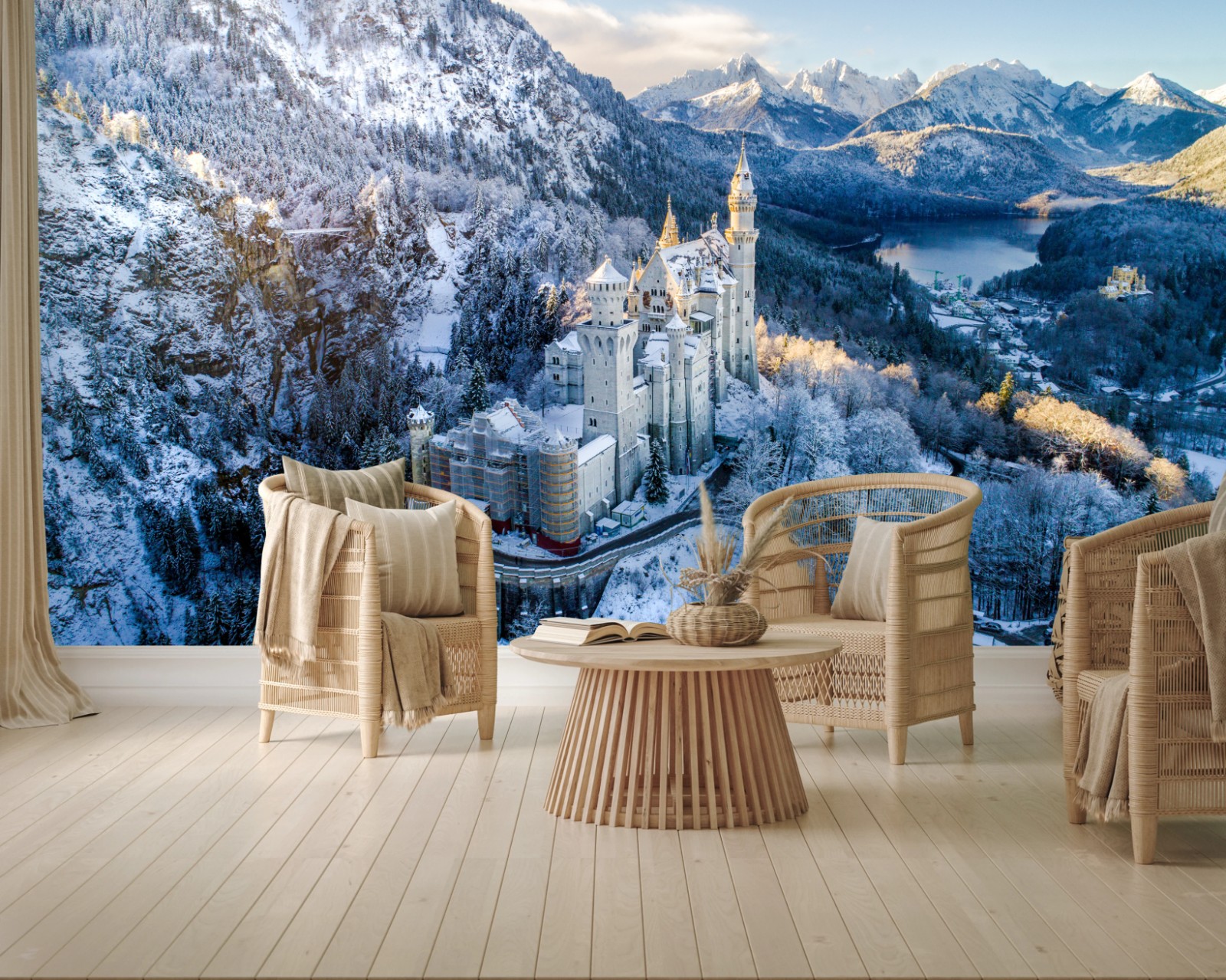 Fototapeta Zimowy zamek w ośnieżonych górach