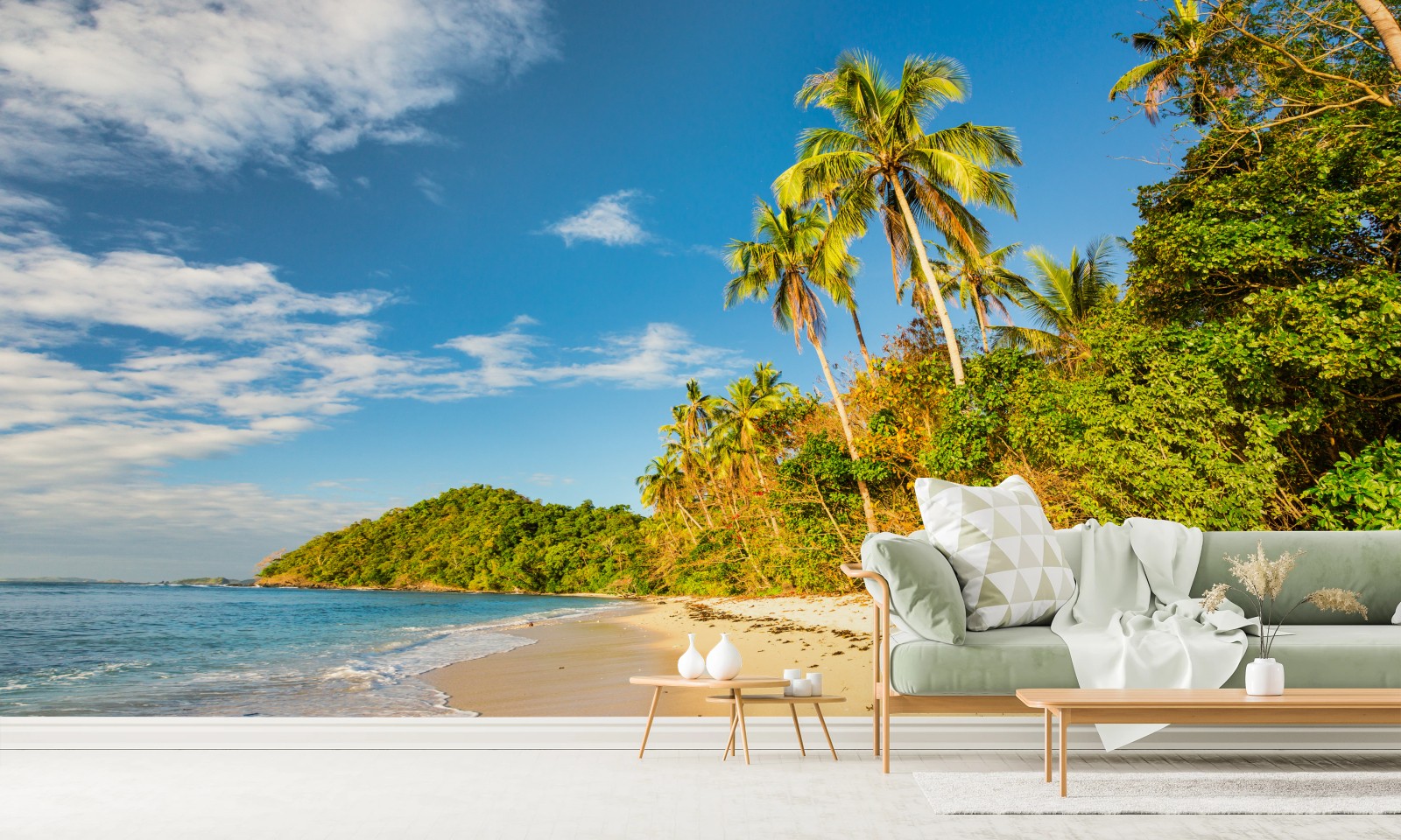 Fototapeta Złota tropikalna plaża o zachodzie słońca
