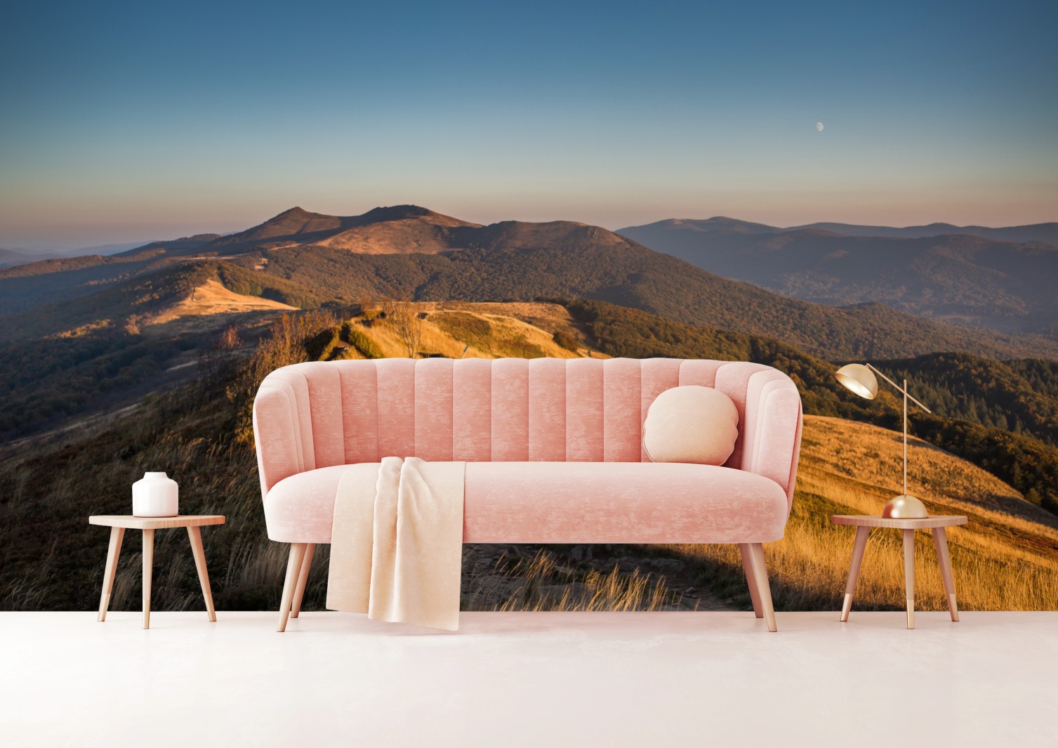 Fototapeta Złoty grzbiet górski o zachodzie słońca