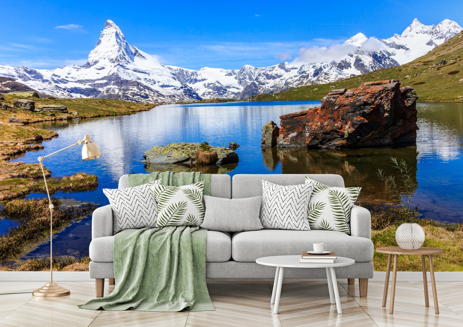 Fototapeta Spokojne odbicie Matterhornu nad jeziorem Stellisee, Zermatt