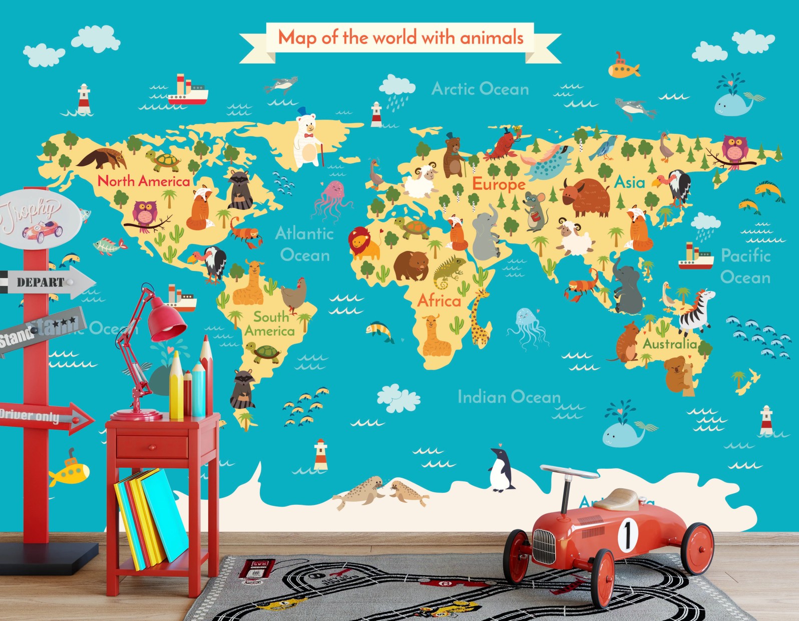 Fototapeta Zabawna mapa świata ze zwierzętami