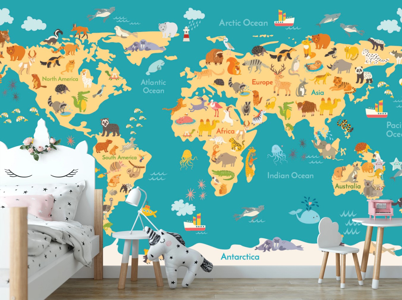 Fototapeta Kolorowa mapa świata ze zwierzętami