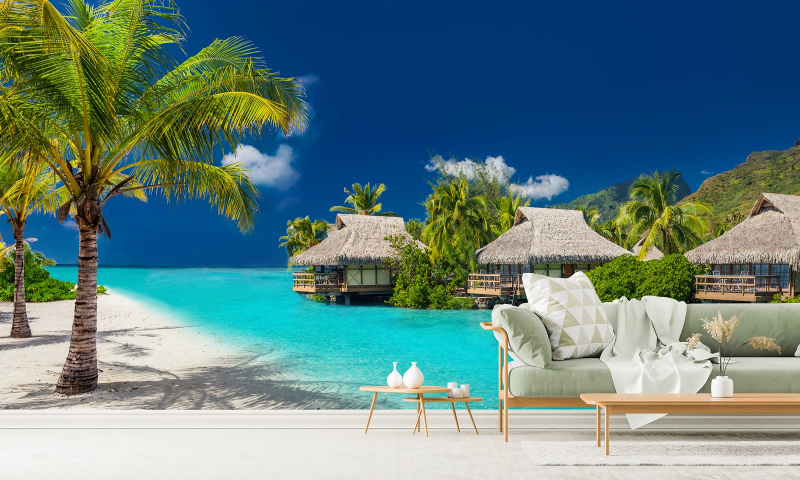 Fototapeta Tropikalne bungalowy nad turkusowym morzem