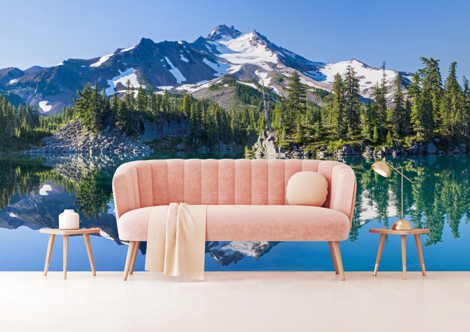 Fototapeta Spokojne górskie jezioro z lustrzanym odbiciem