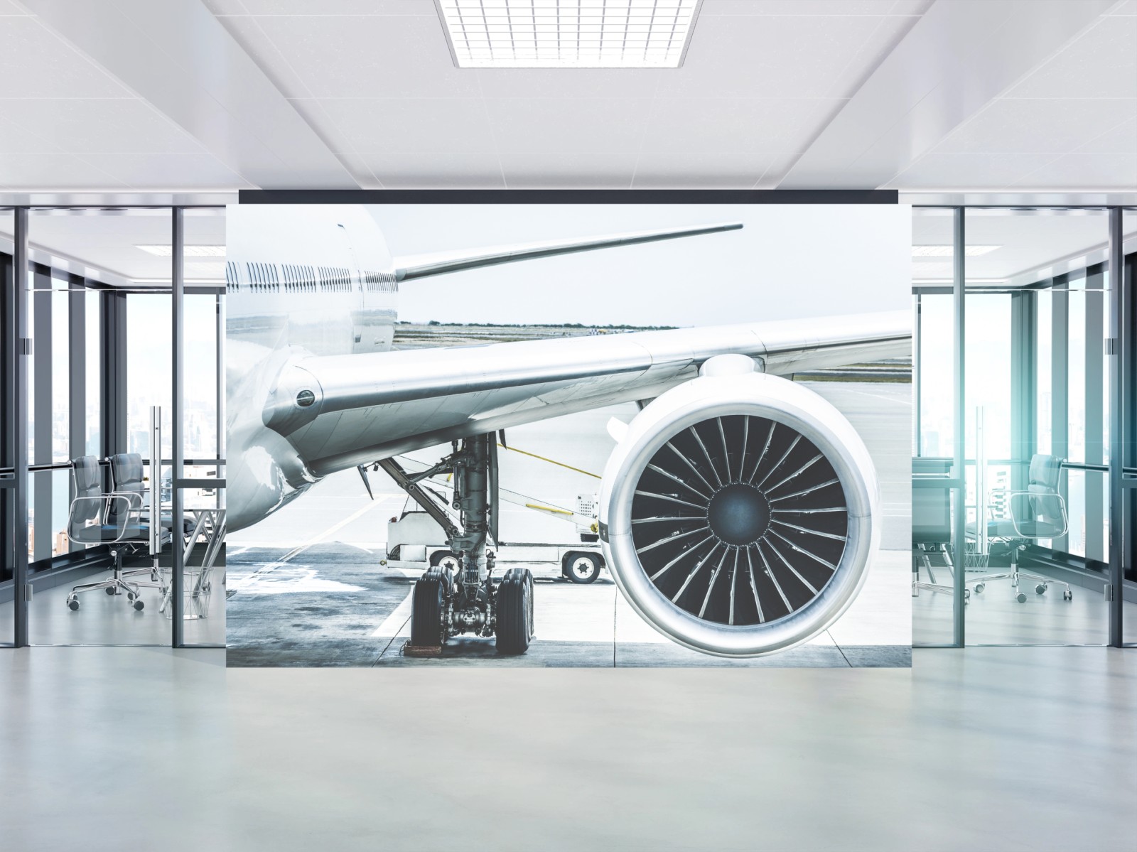 Fototapeta Zbliżenie silnika odrzutowego na terminalu