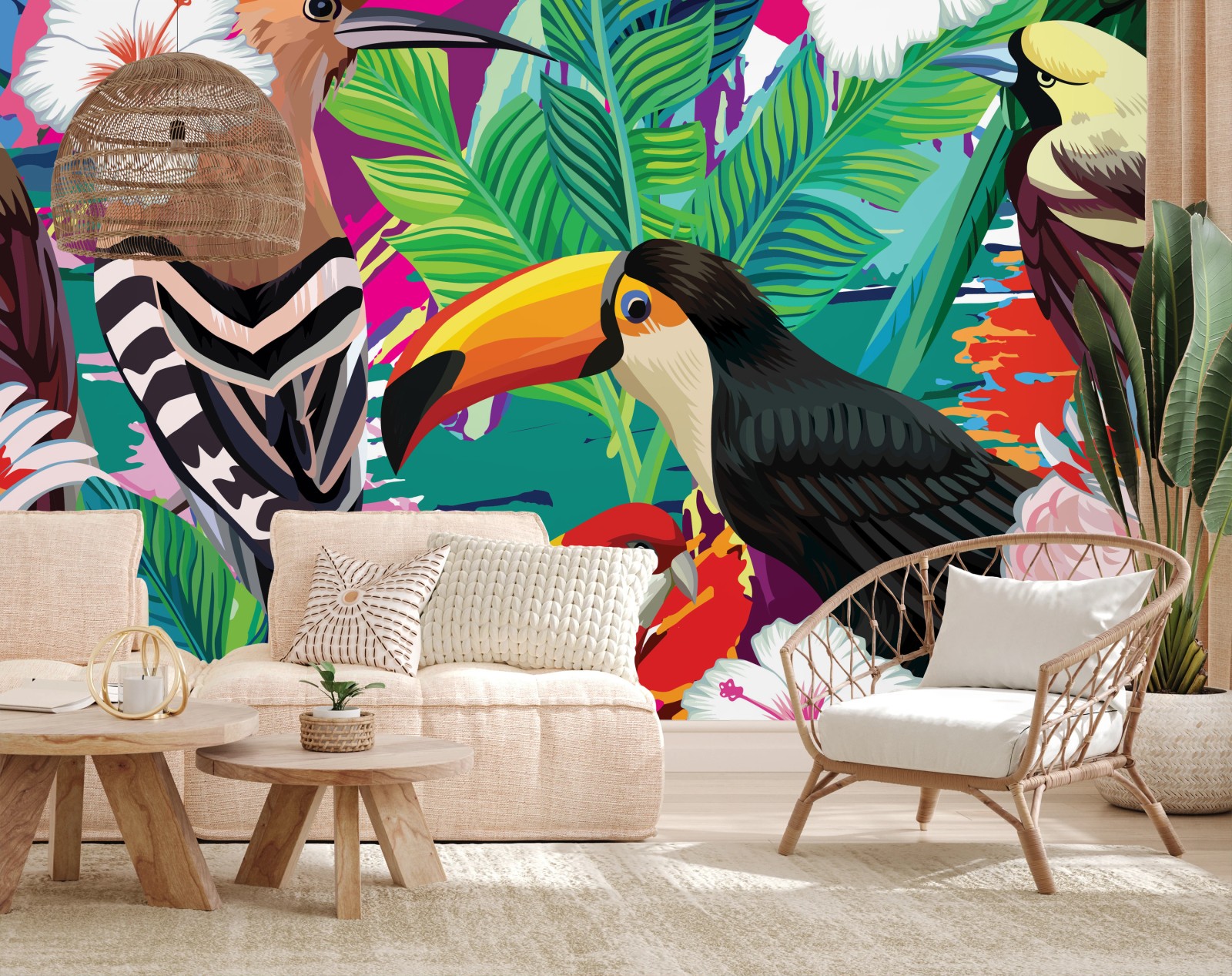 Fototapeta Żywe tropikalne ptaki w dżungli