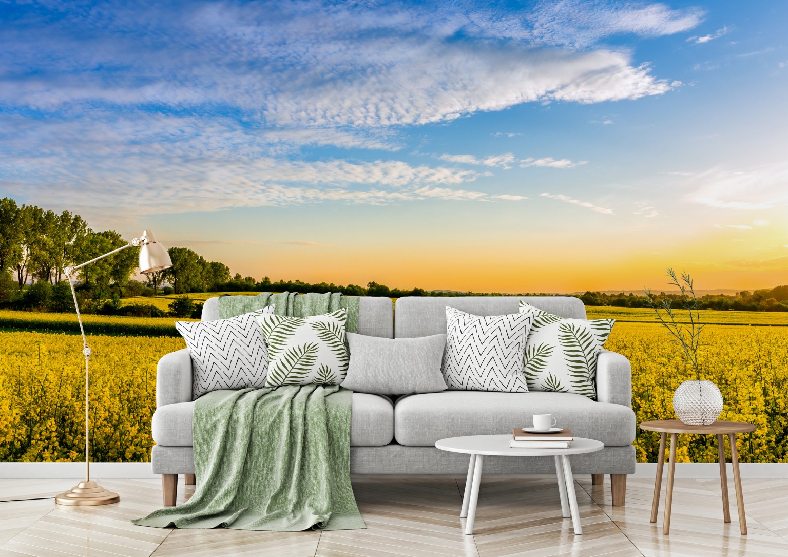 Fototapeta Słoneczne pole rzepaku o zachodzie słońca