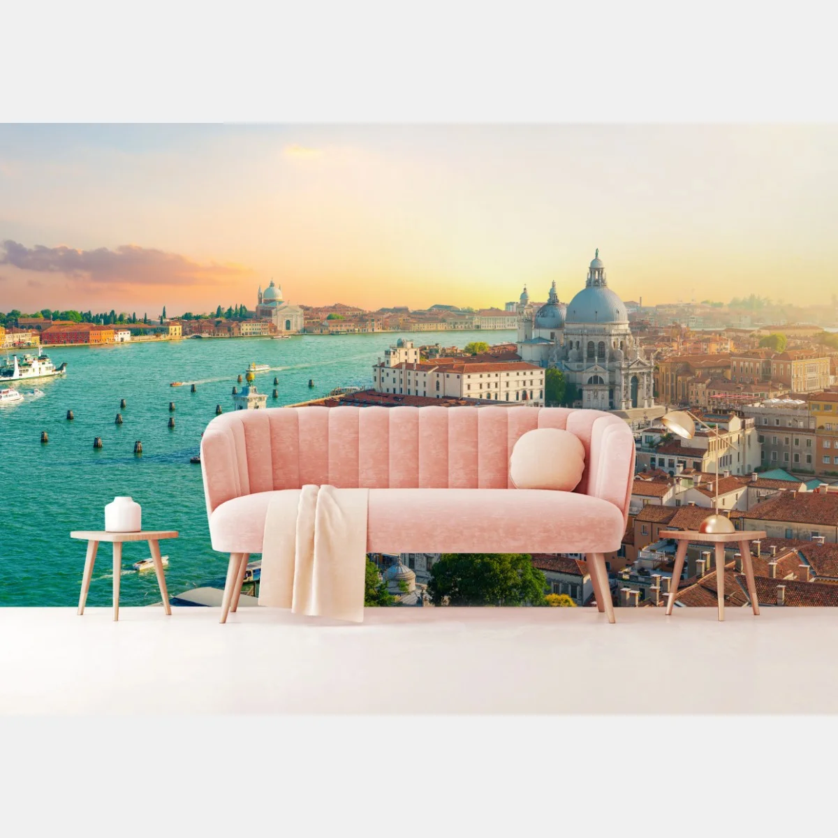 - panorama, zabytki, podróże, krajobraz miejski, architektura, wenecja, woda, łodzie, zachód słońca, kanały