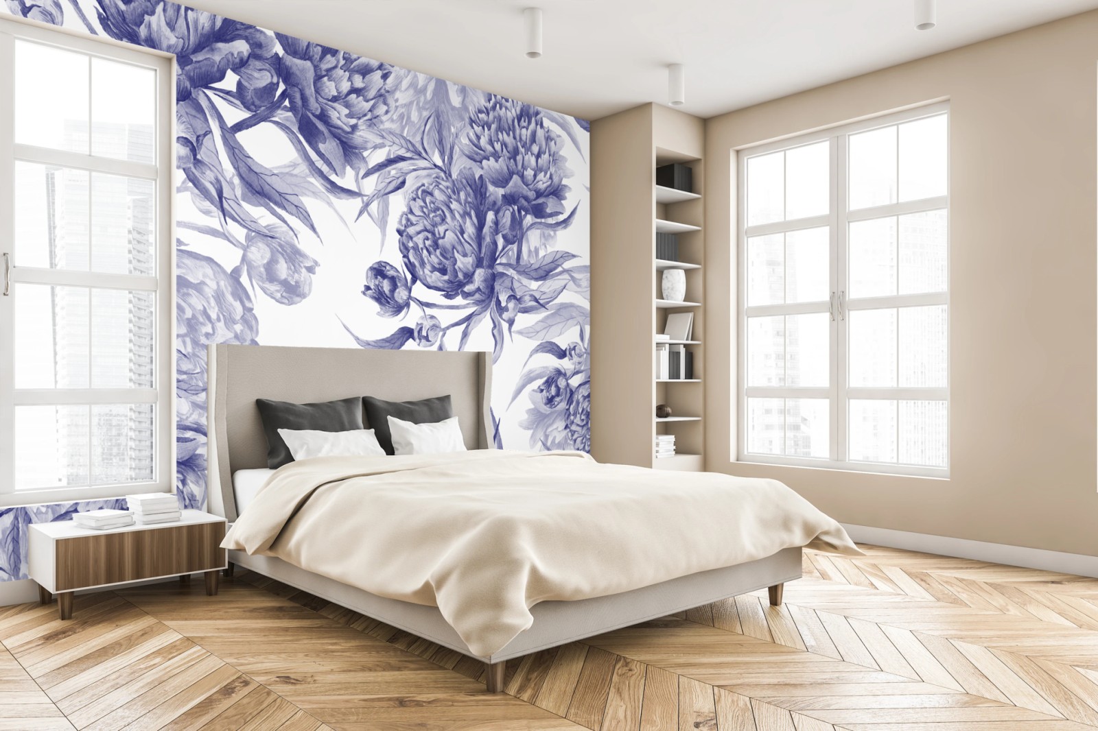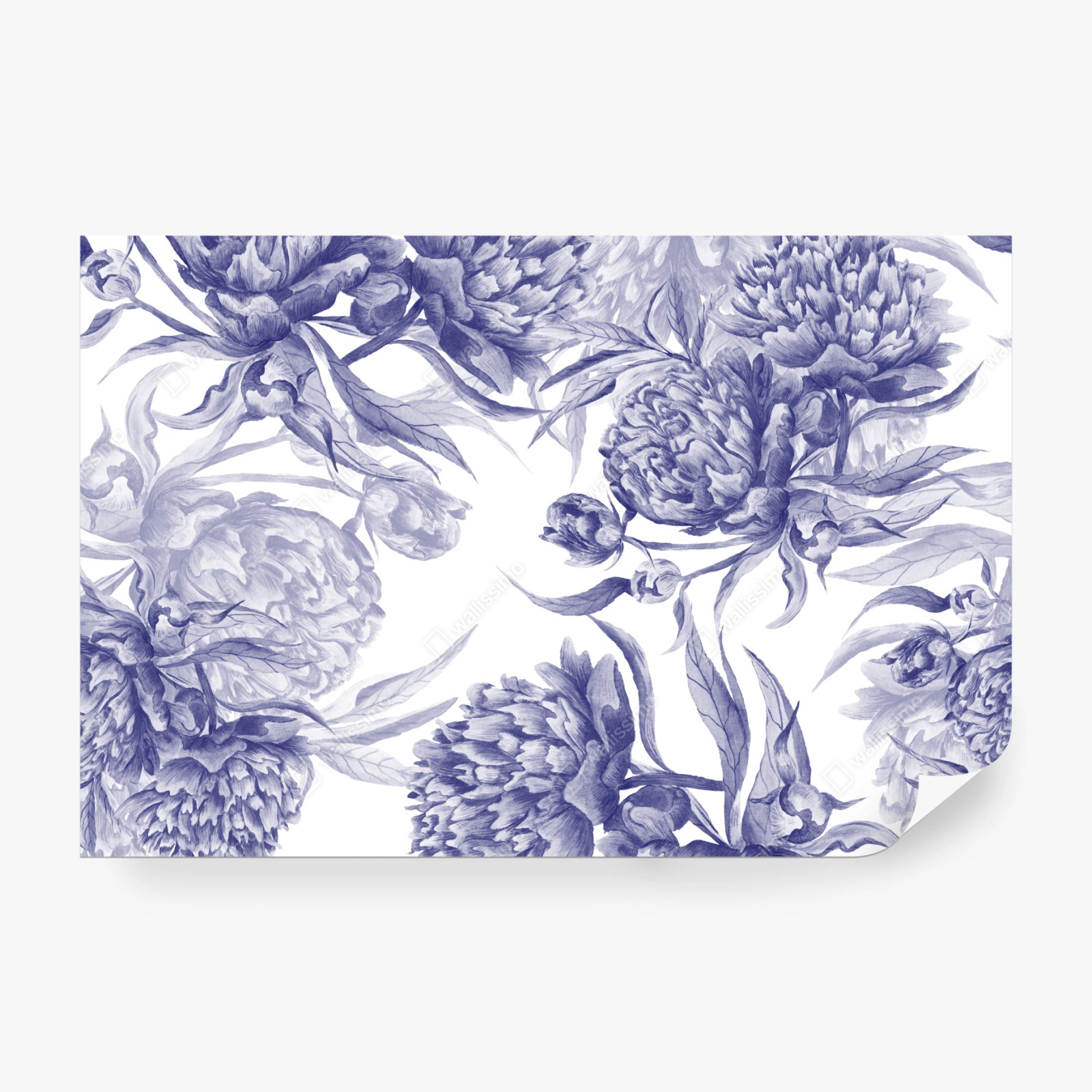 Fototapeta Niebieskie peonie w stylu botanicznym
